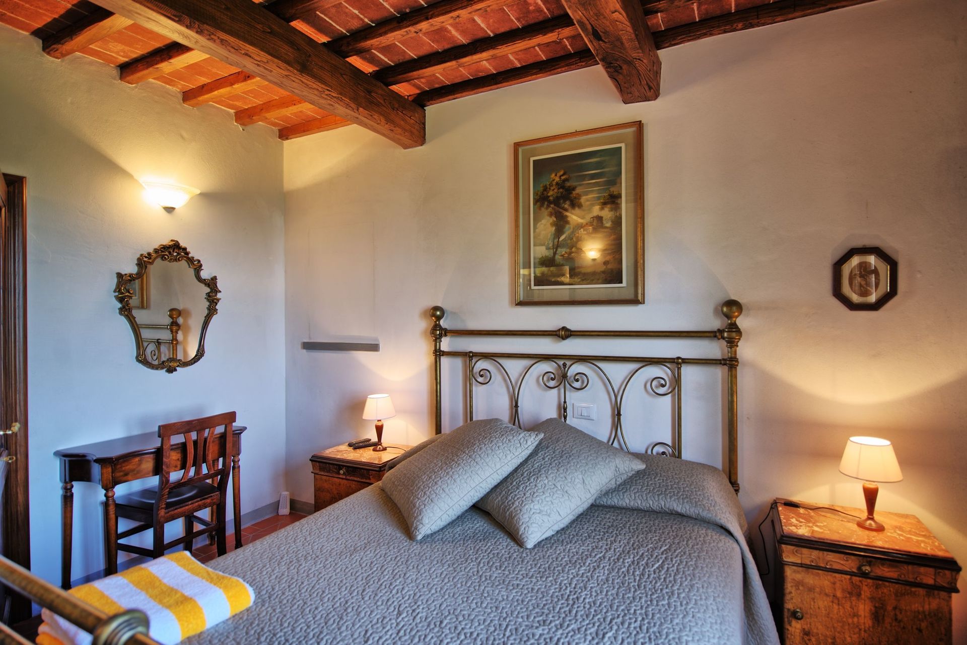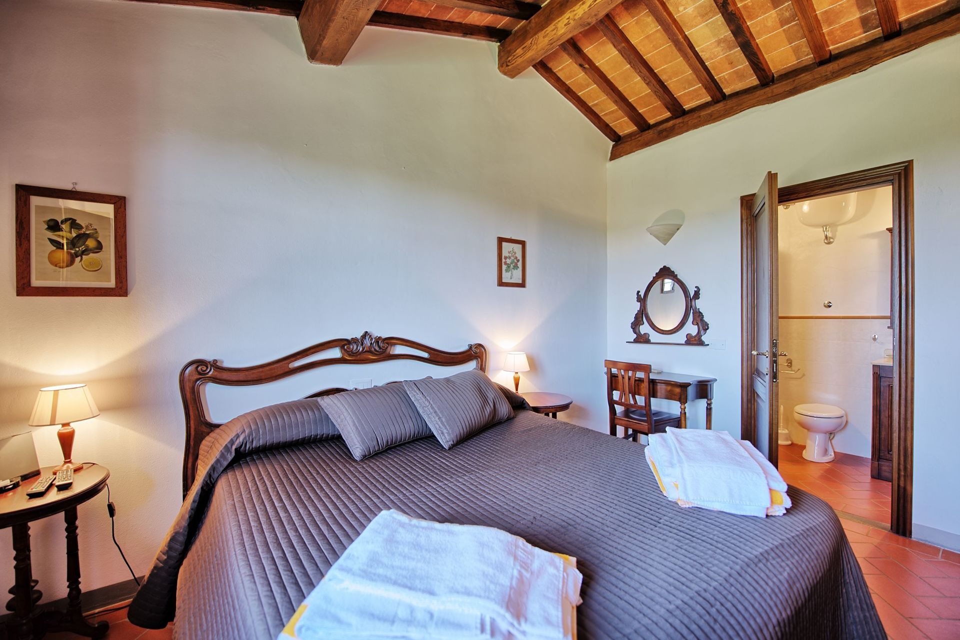 Første sal: 2 dobbeltværelser (satellit-tv) med privat badeværelse med bruser og smuk udsigt over det omkringliggende landskab.