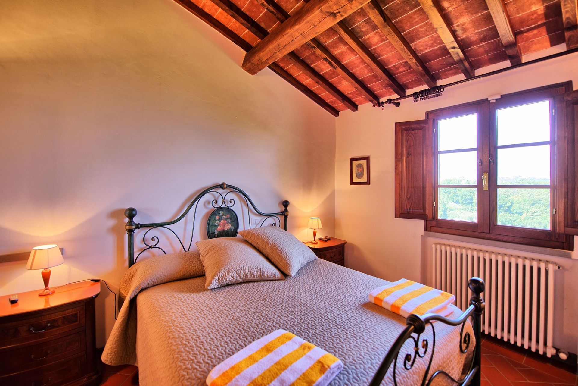 A very nice house, nicely furnished and comfortable. The house is located in the hills, far away from the city, so it is very calm and surrounded by the Tuscany landscape. The house has all the necessary equipment for everyday life (to cook, washing machine and iron table). The swimming pool is nice and big enough for kids to play. The landlord is welcoming and offered us a little welcome gift with olive oil, sweet Italian wine and Italian cookies. A place we recommend.