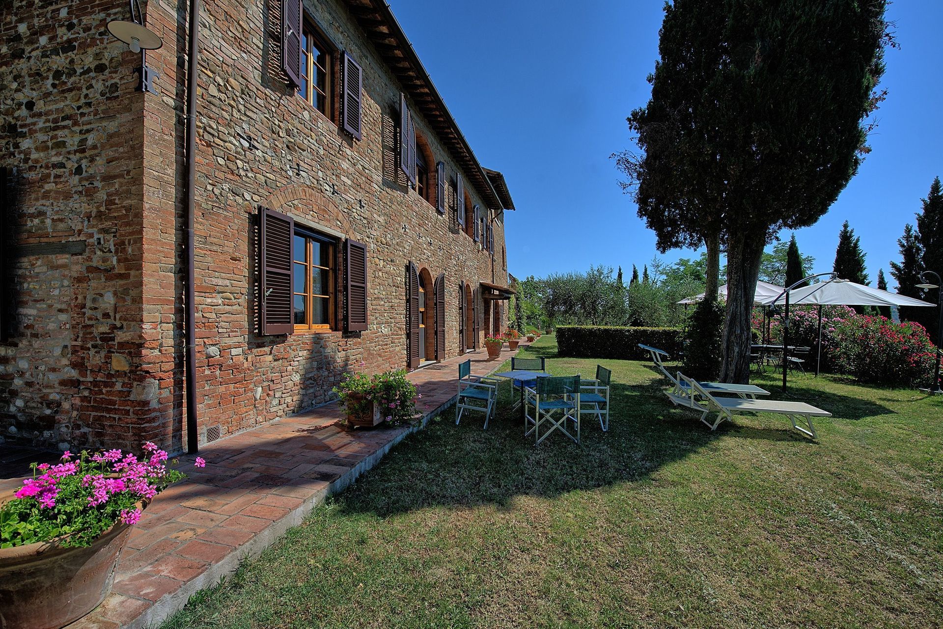 Beautiful brick villa situated in quiet and panoramic location amidst the green hills of the Chianti region with enchanting views over the surrounding vineyards and olive groves. This property has been skilfully restored with all its original architectural features preserved and turned into a charming country house providing all modern comforts. The house is tastefully furnished with antiques and ancient carpets.