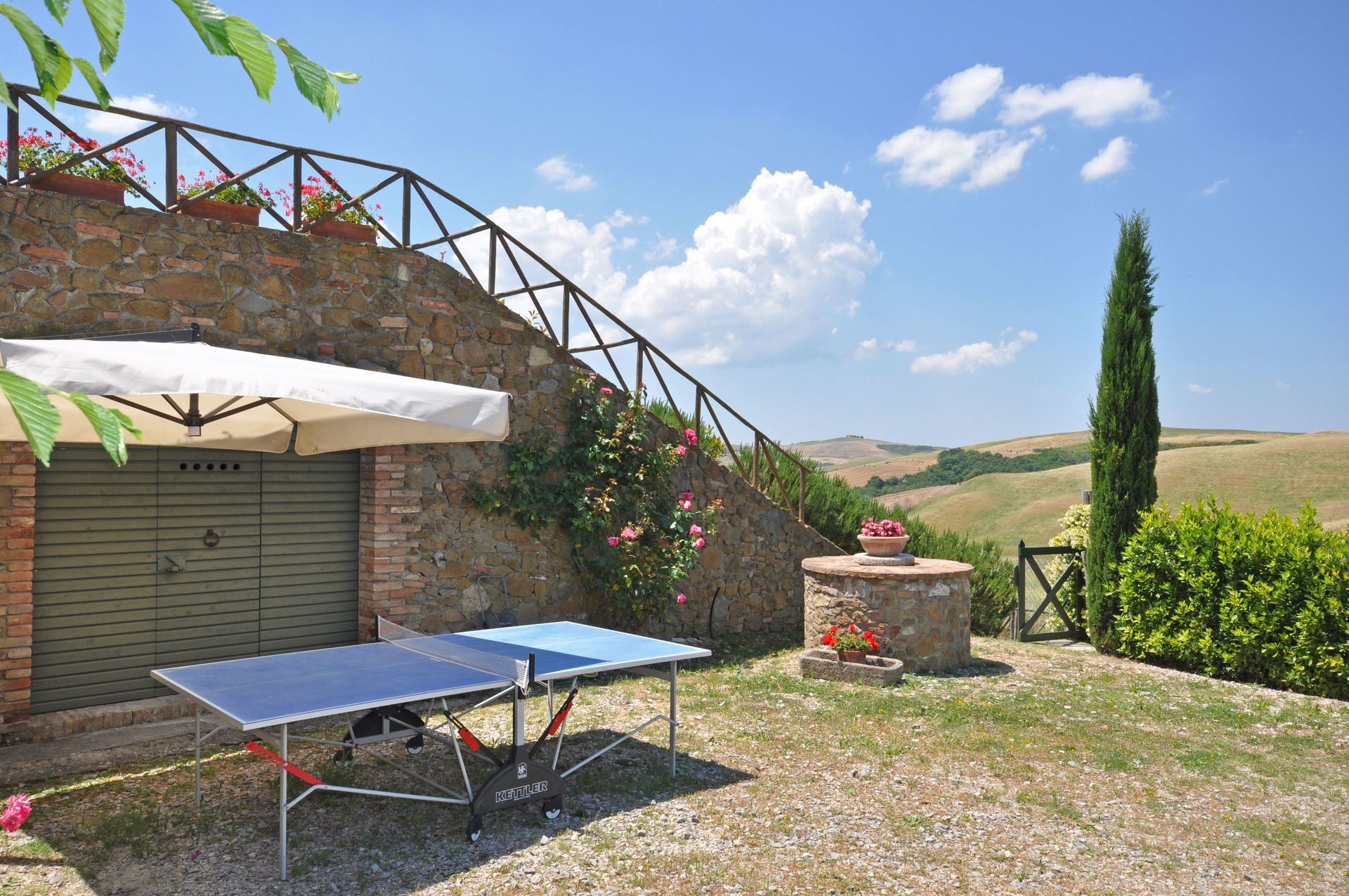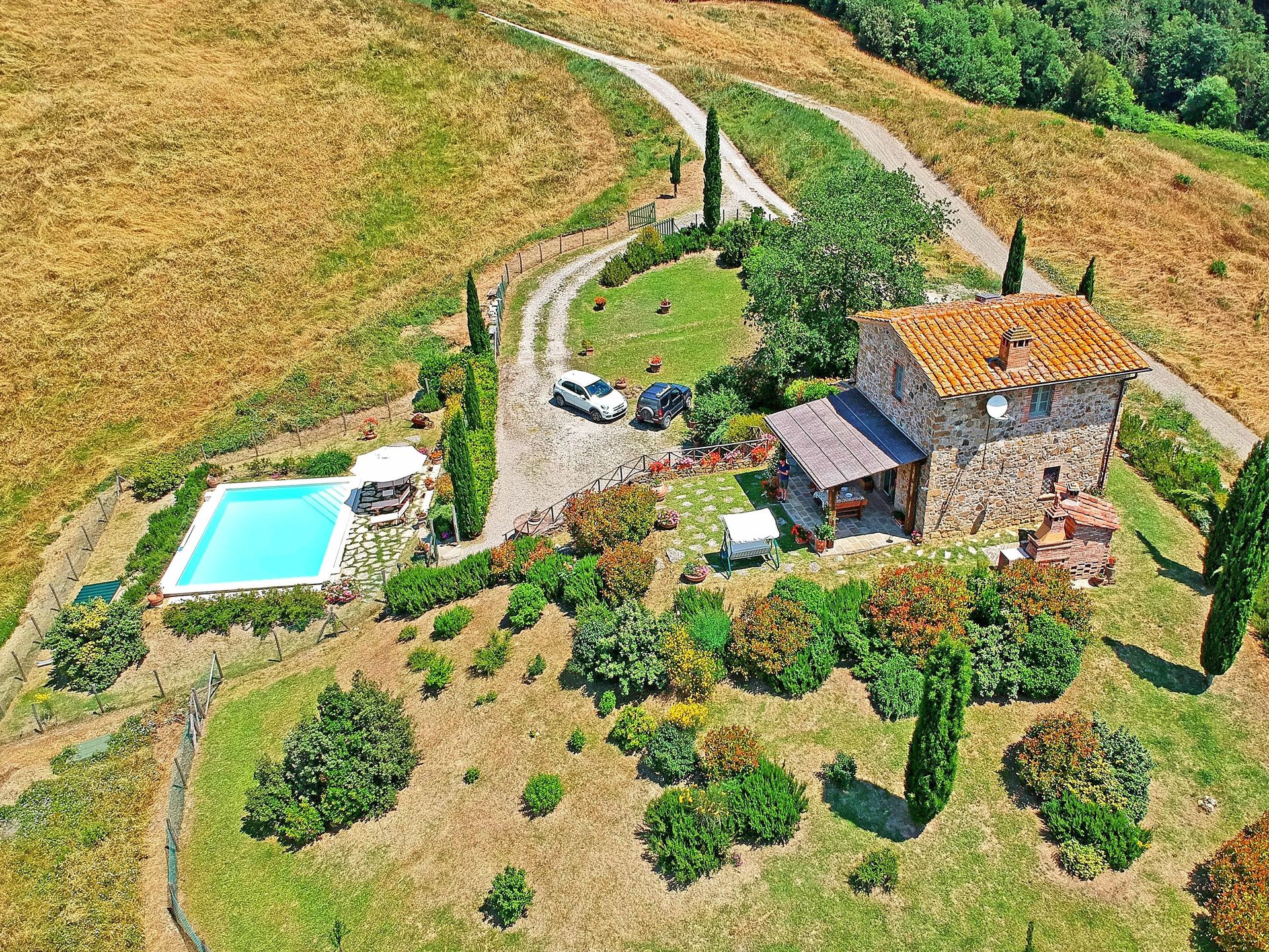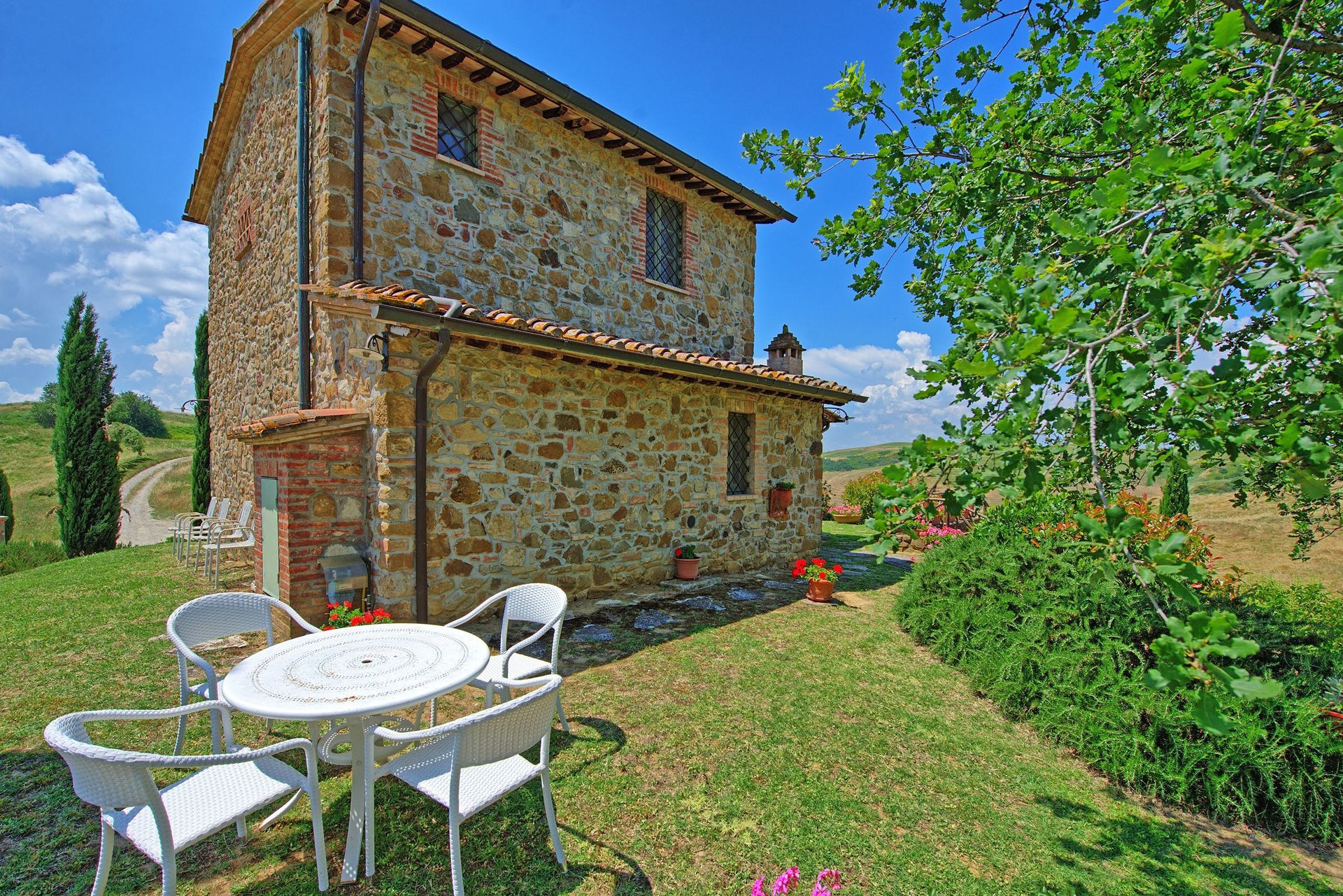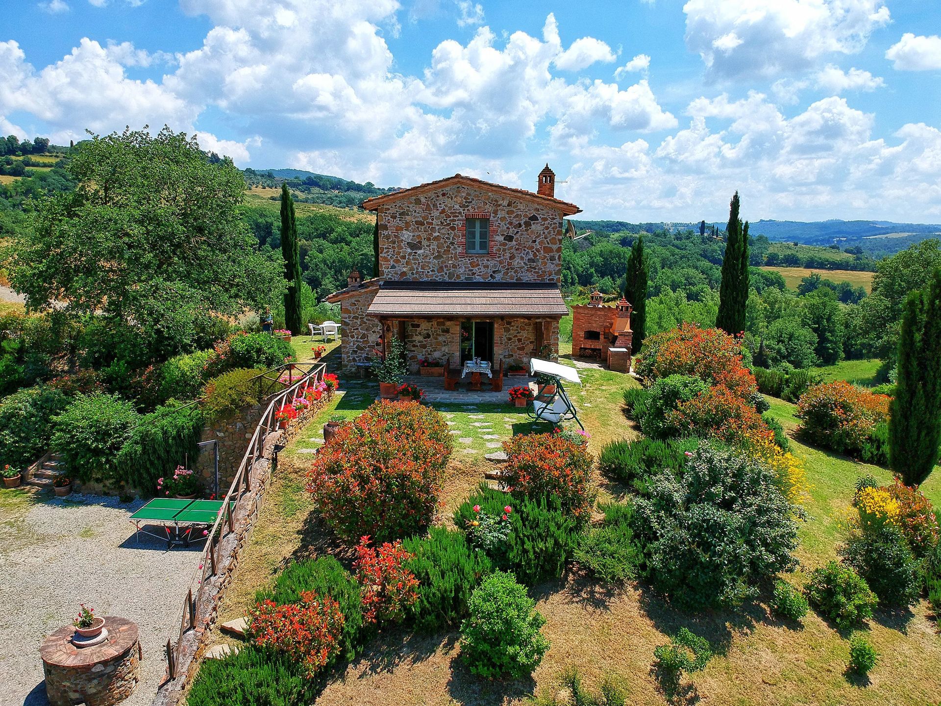 Charmerende sommerhus i en tidligere stald med privat pool syd for Siena, blandt de smukke bakker på Crete Senesi i Toscana. Huset er pænt restaureret og bevarer de originale arkitektoniske træk og er blevet en komfortabel landlig indkvartering som er smagfuldt indrettet. Denne fine ejendom har en flot udsigt over de omkringliggende bakker og dale.