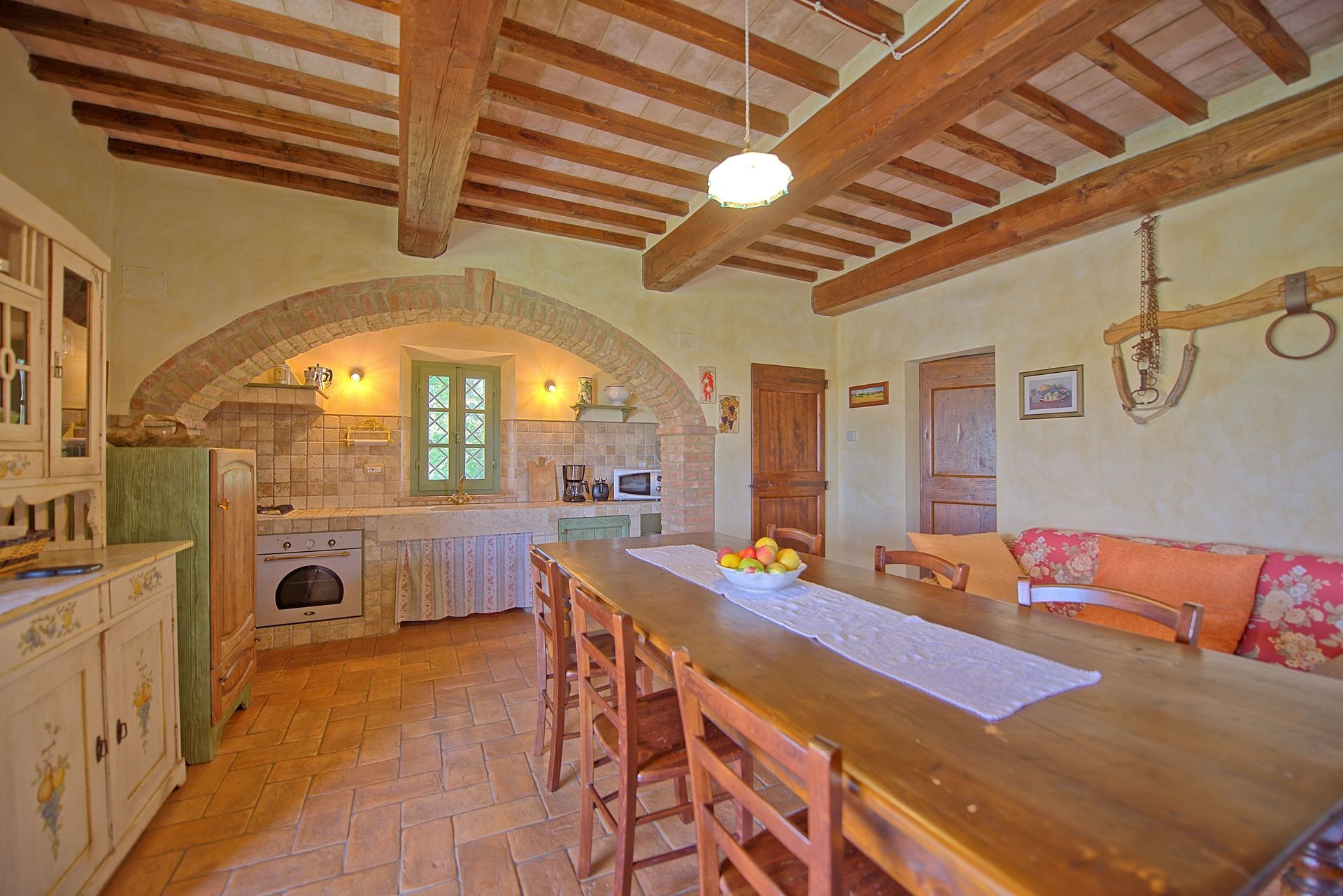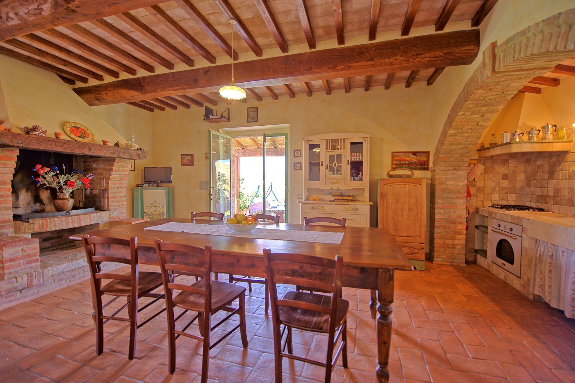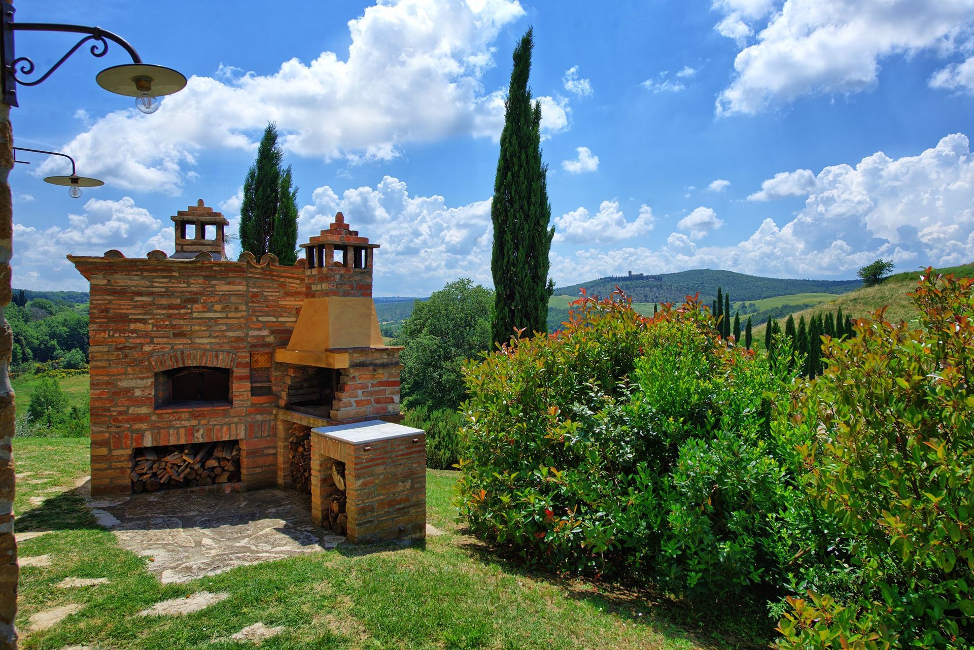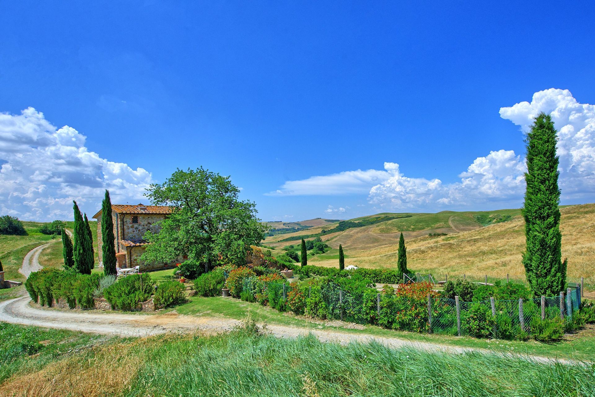 Charmerende sommerhus i en tidligere stald med privat pool syd for Siena, blandt de smukke bakker på Crete Senesi i Toscana. Huset er pænt restaureret og bevarer de originale arkitektoniske træk og er blevet en komfortabel landlig indkvartering som er smagfuldt indrettet. Denne fine ejendom har en flot udsigt over de omkringliggende bakker og dale.