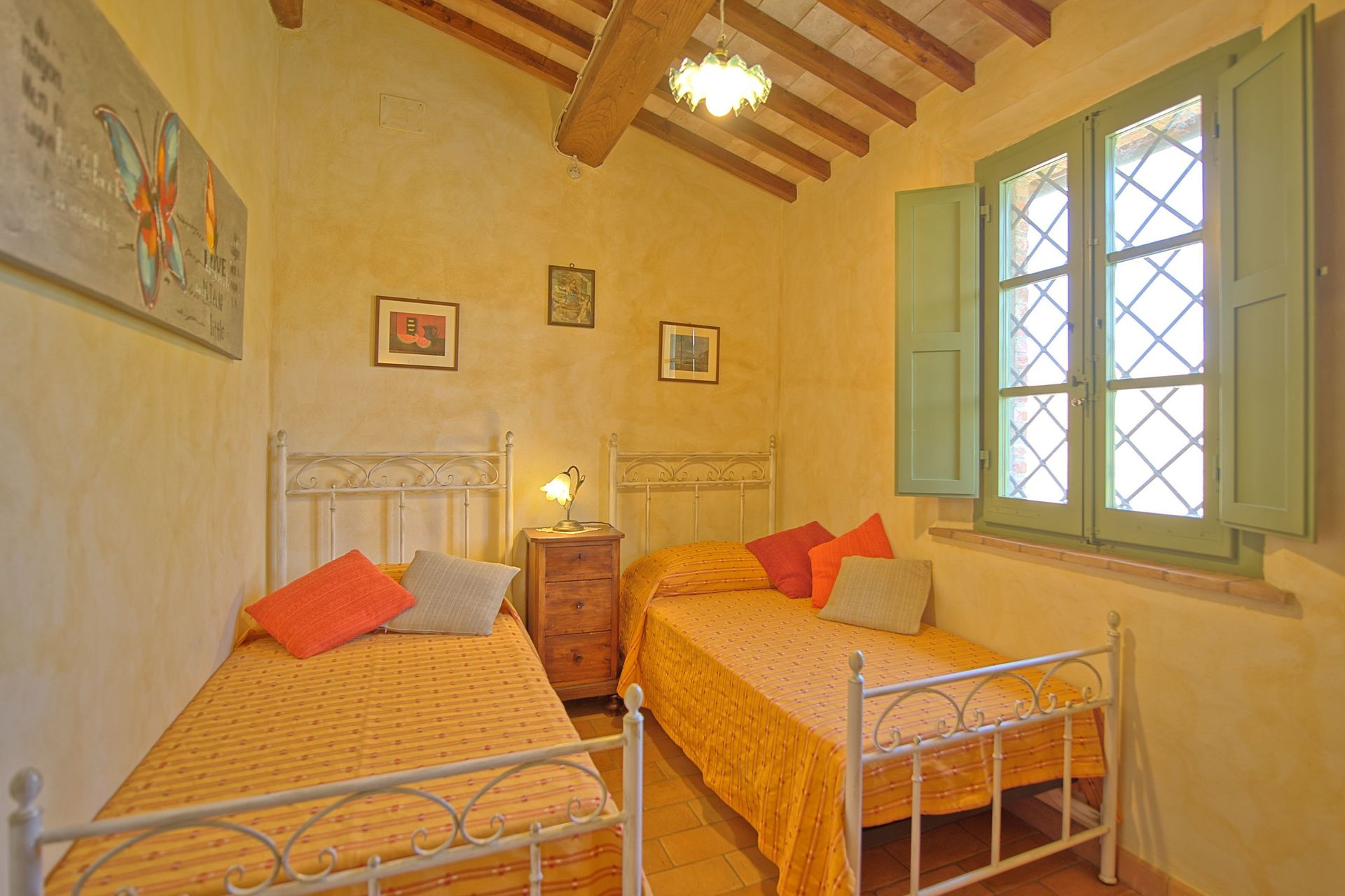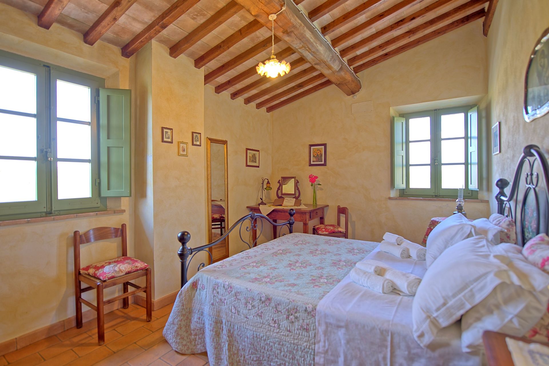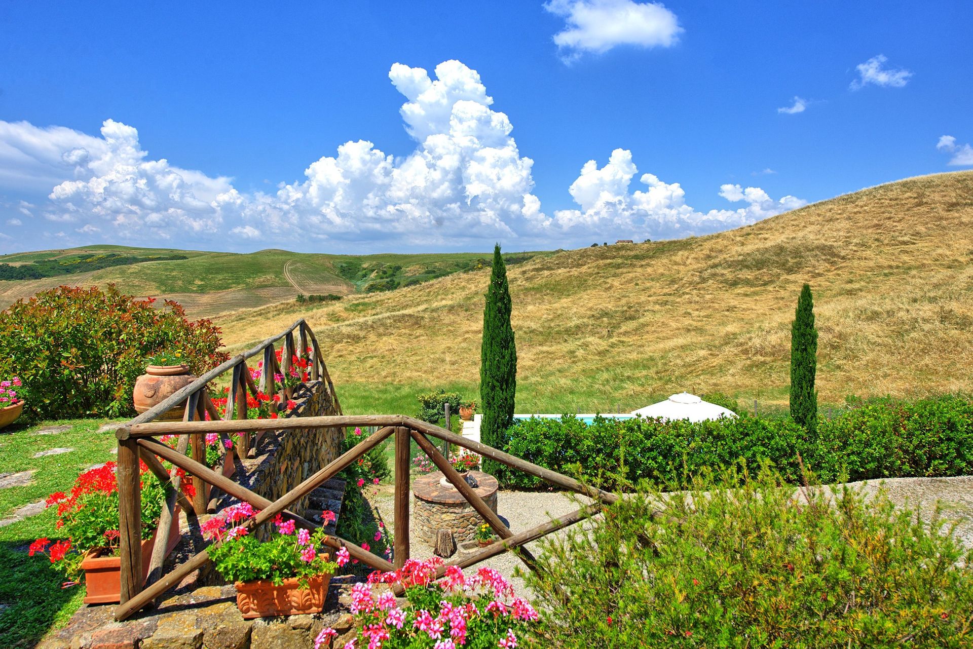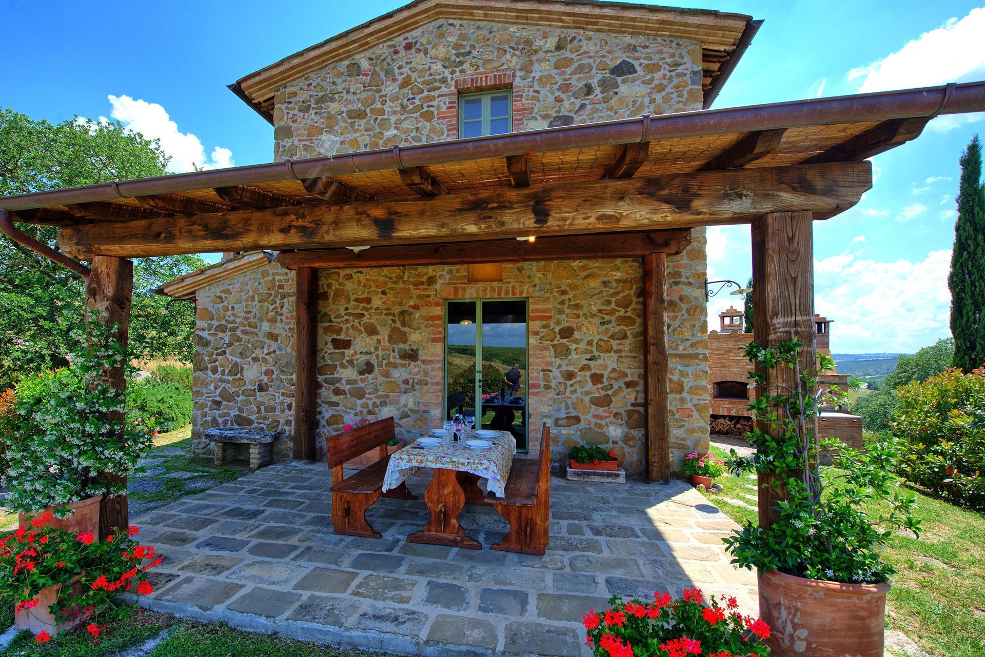 Charmerende sommerhus i en tidligere stald med privat pool syd for Siena, blandt de smukke bakker på Crete Senesi i Toscana. Huset er pænt restaureret og bevarer de originale arkitektoniske træk og er blevet en komfortabel landlig indkvartering som er smagfuldt indrettet. Denne fine ejendom har en flot udsigt over de omkringliggende bakker og dale.