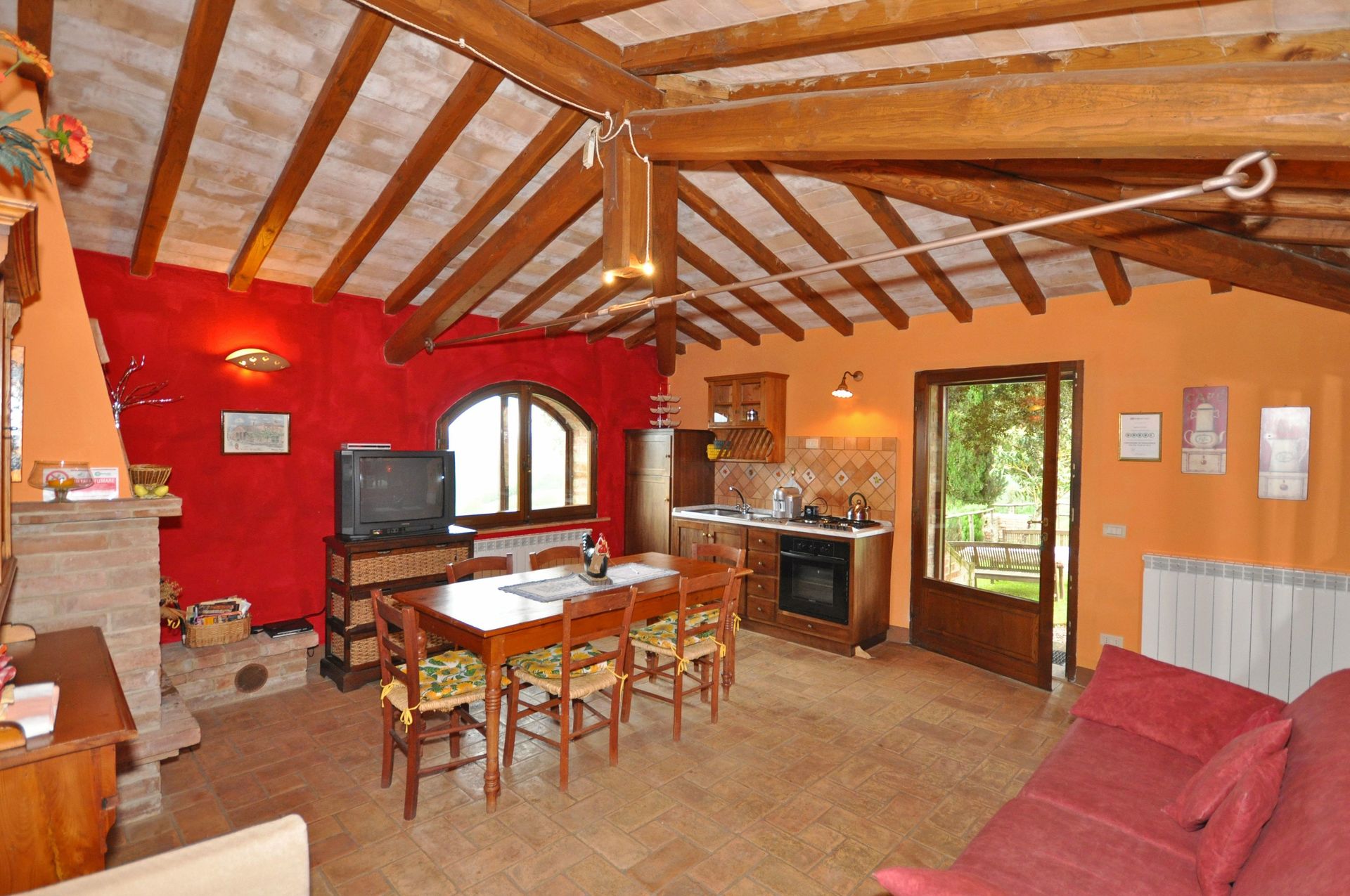 The hamlet has been well restored keeping many of the original features such as terracotta tiled floors, sturdy wooden beams on the ceiling and brick walls.
