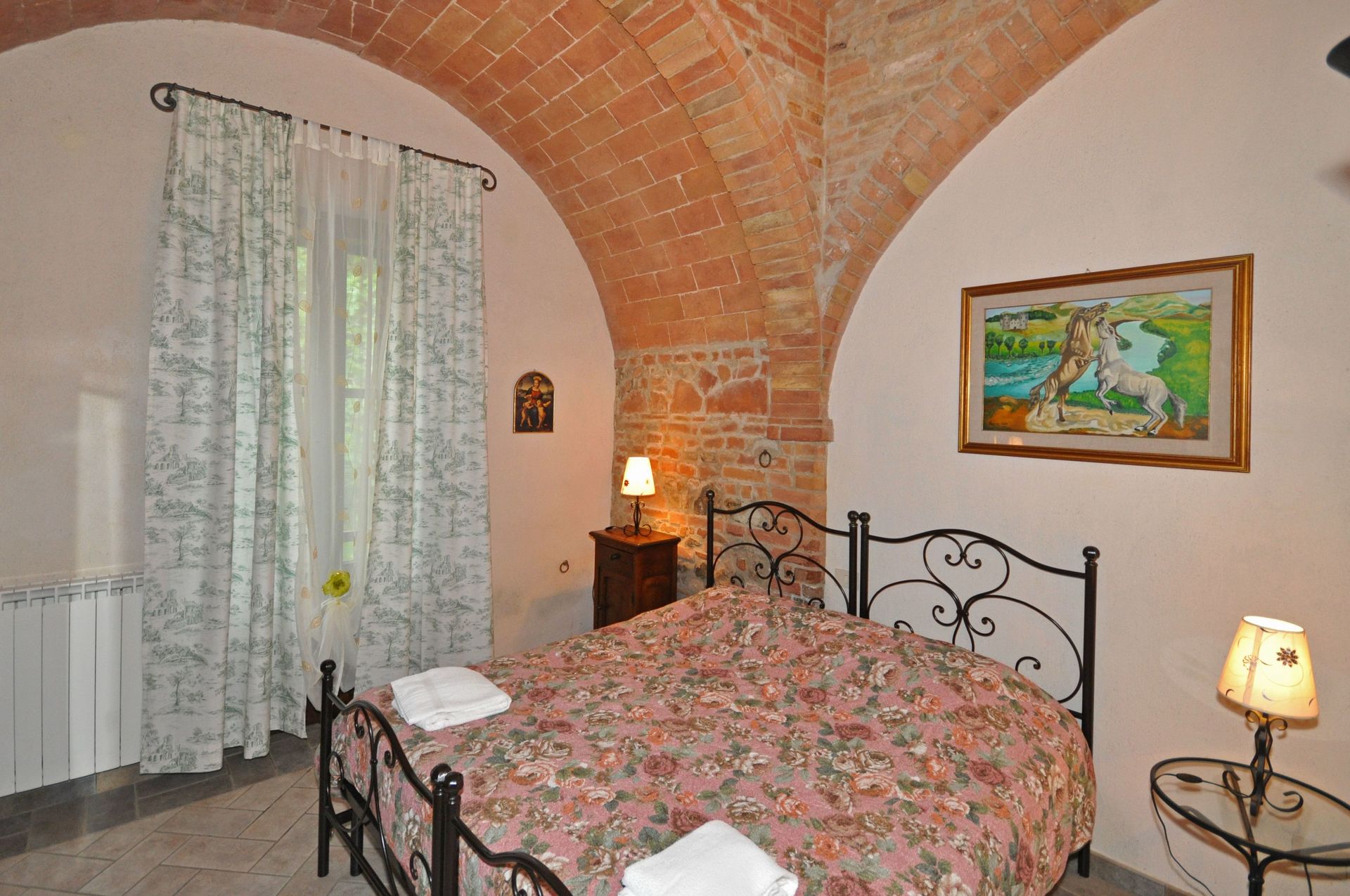 The large swimming pool is placed in the well-maintained garden area of the hamlet and has endless view over the Tuscan countryside below. For the guests' comfort, sun loungers and umbrellas are at their disposal on the terrace surrounding the pool. Built-in steps lead you gradually into the shallow area of the pool.