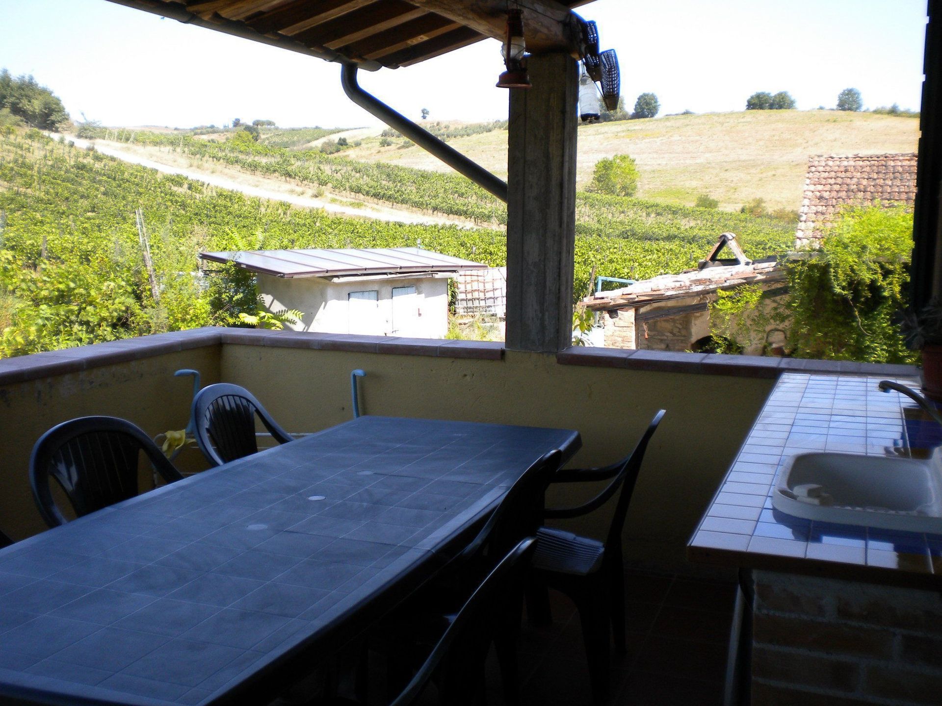 Apartment in farmhouse with pool view and vineyards, private entrance on the first floor with a large balcony, fully equipped kitchen, large dining room, 2 double bedrooms, and bathroom with shower