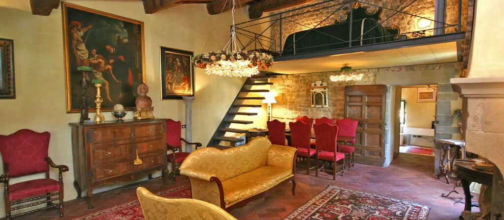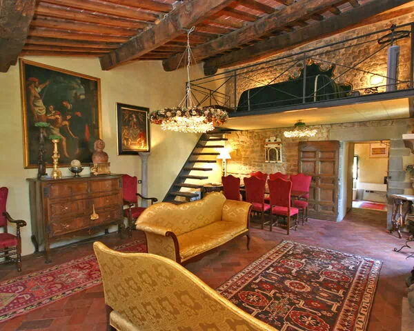 Charming tower dating back to the 14th century which has been tastefully restored preserving its original architectural features. This apartment is set on different levels and offers beautiful frescoed interiors decorated with ancient pieces and antiques. The tower is situated right in the centre of the medieval town of Figline Valdarno (only 30 km away from Florence) with all kinds of shops and a railway station with frequent trains for Rome and the rest of Italy.