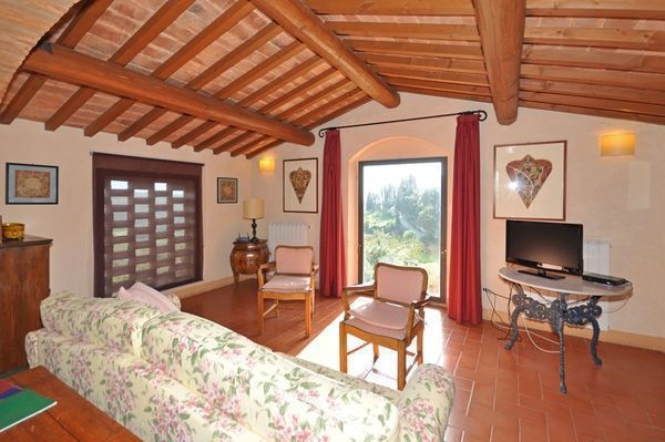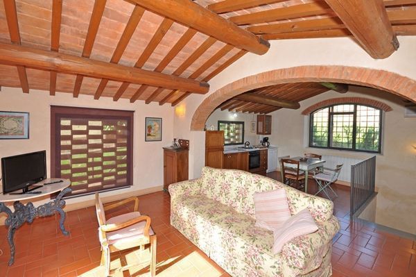 This ex-hayloft is part of a farm located behind Villa Torre a Cona. It was recently renovated to create an independent two-storeyed unit.
