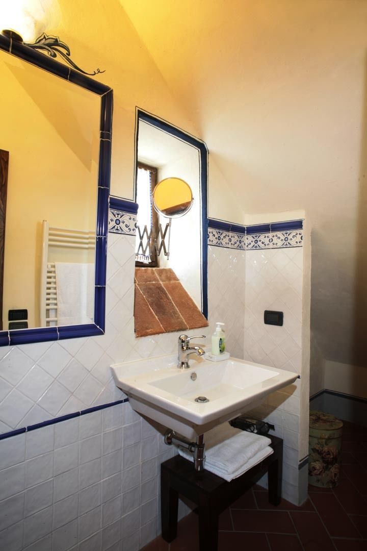 On the eastern part of the building, this flat is spacious and comfortable and can accomodate up to four people. The original, long-shaped bathroom is built in the small tower of the villa.