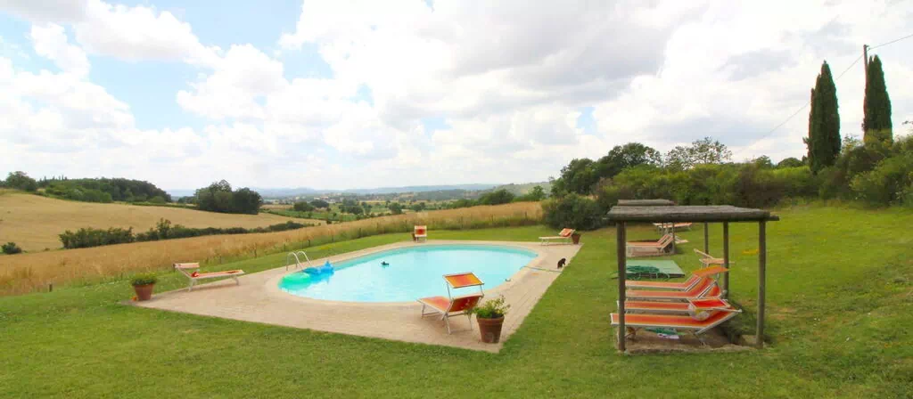 From the windows of the old farmhouse, you will enjoy an incomparable view of the suggestive landscape of the Valdichiana hills, where, scattered here and there, you will glimpse beautiful farmhouses, 19th-century villas and medieval villages dominated by mighty castles. An idyllic setting that will be nourishment for both your eyes and your mind.