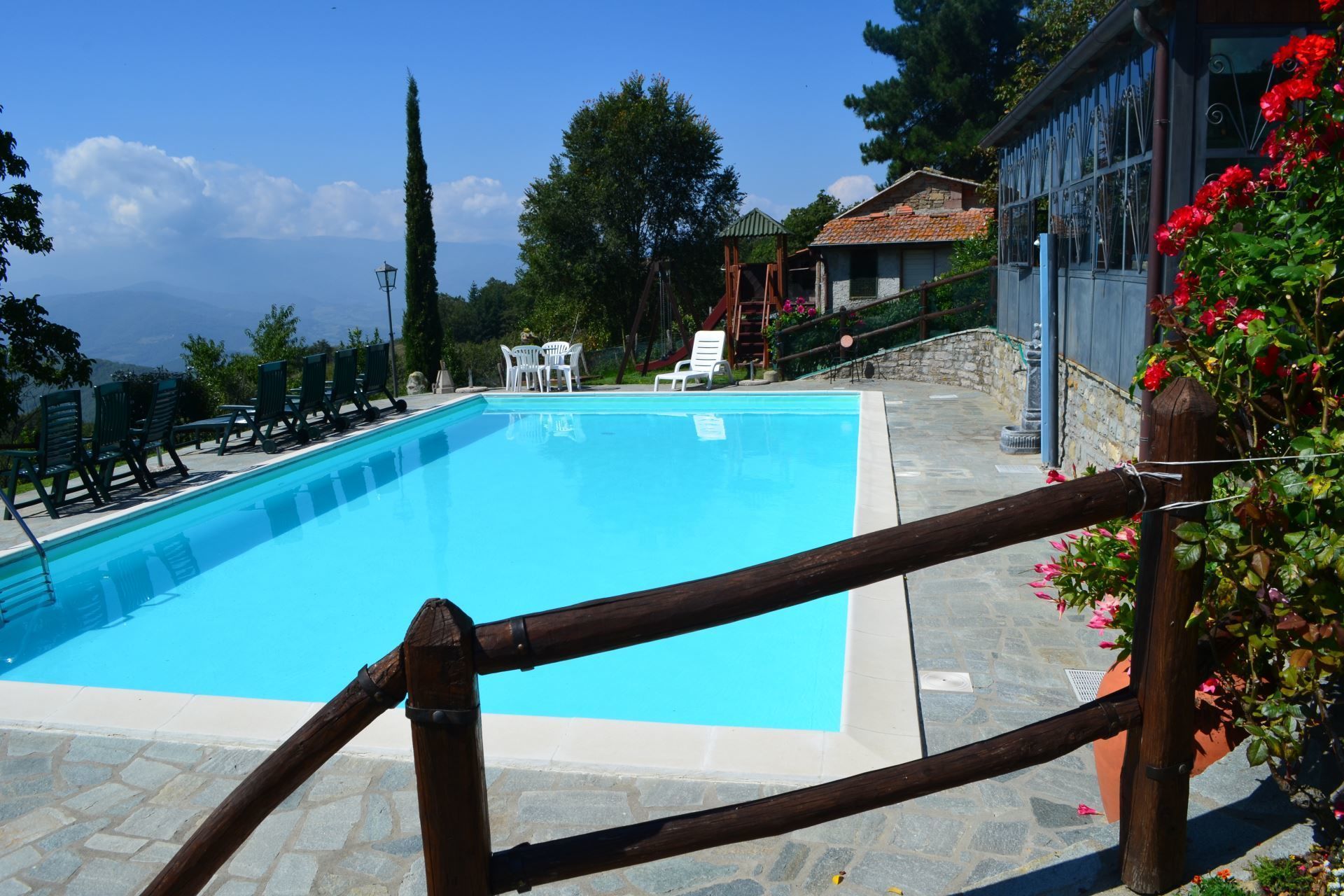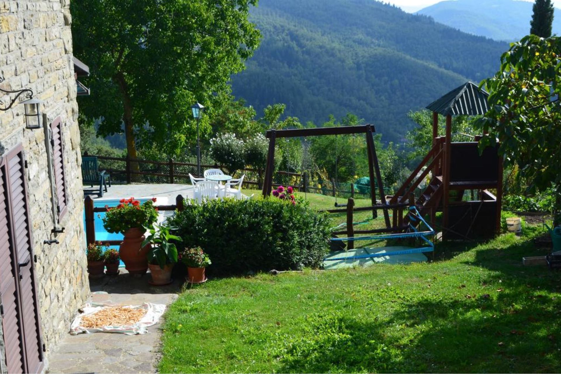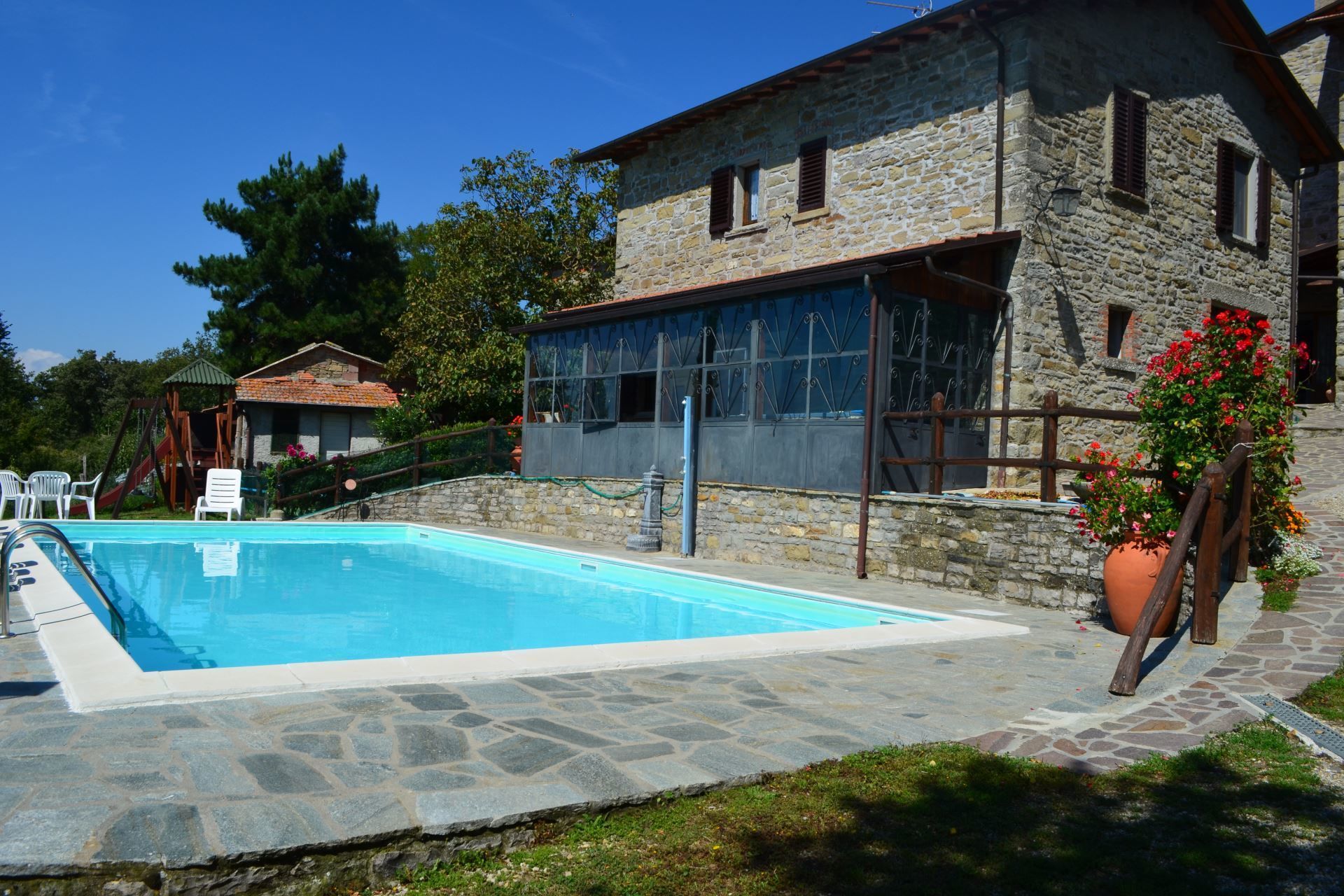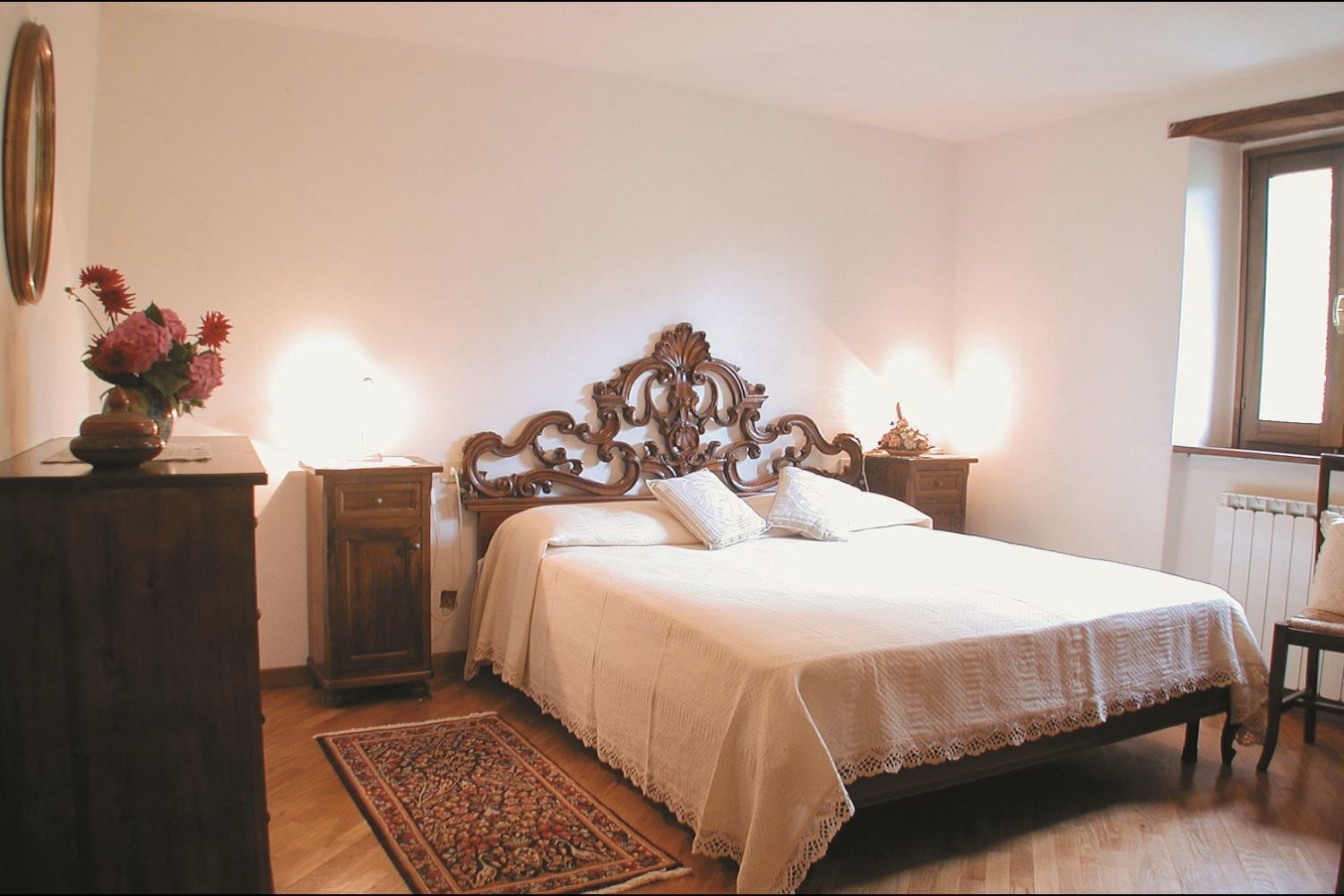 First-floor apartment with entrance from a private internal staircase, comprising living-dining room with kitchen facilities and open fireplace, double bedroom, twin bedroom, bathroom with spa bath.