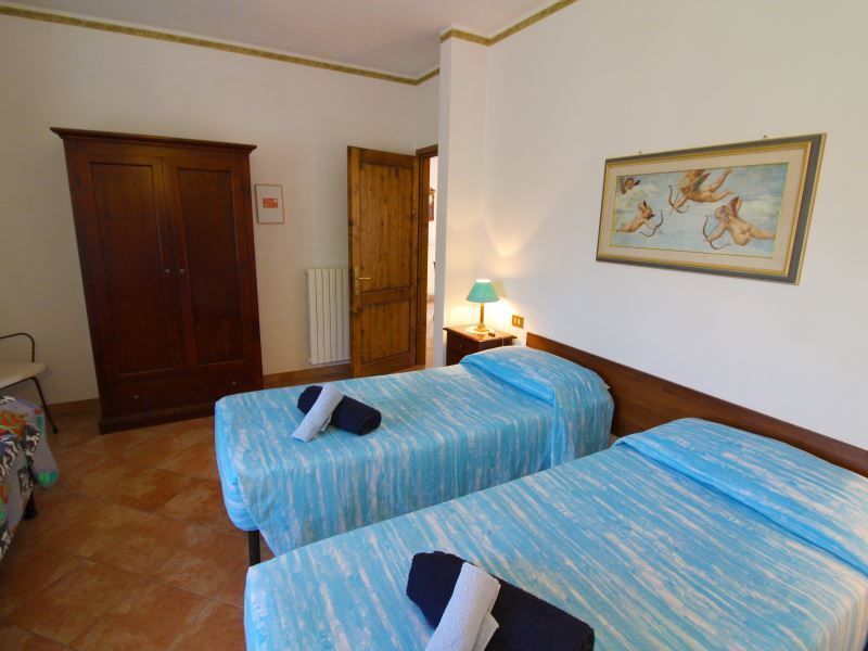 First floor apartment with entrance via external staircase with typical loggia, large sitting-dining room with kitchenette, fireplace and double sofa bed, double bedroom, twin bedroom and bathroom with shower.