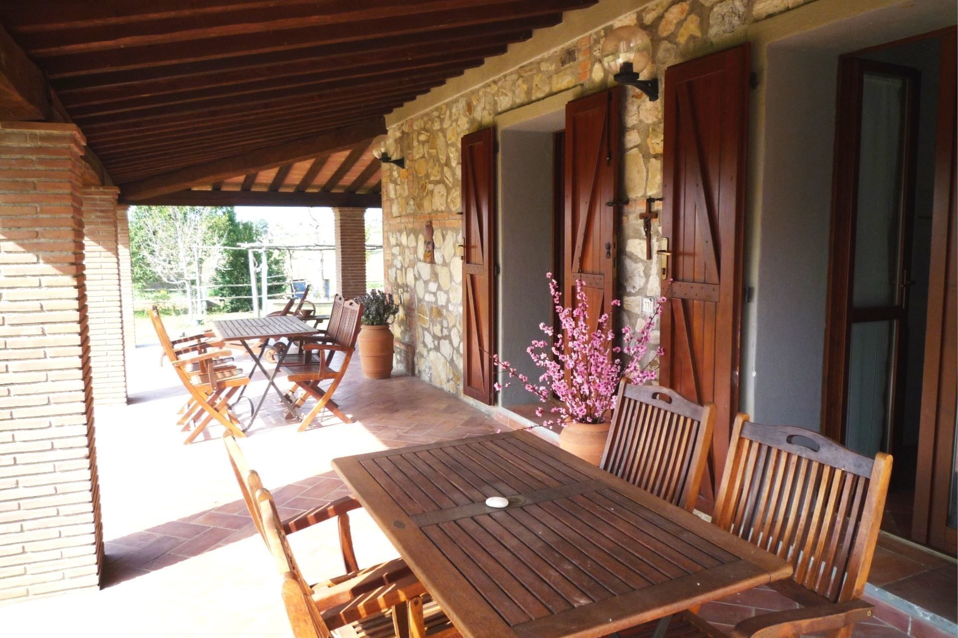All around is the lazy tranquillity of the countryside, which you can enjoy from the furnished portico with your favourite book or a glass of good Morellino di Scansano.
