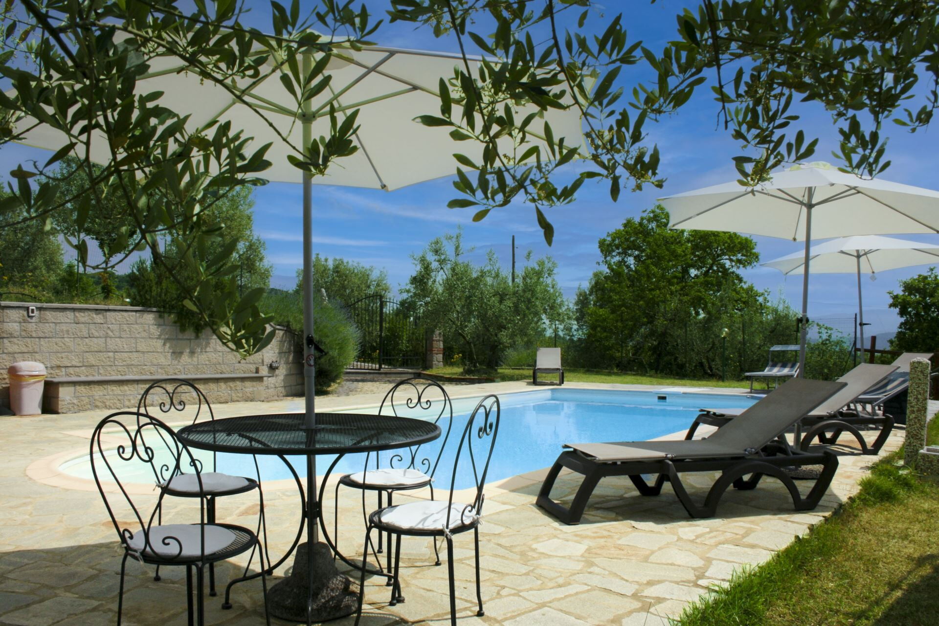 The real icing on the cake here is, however, the breathtaking view from the very panoramic private swimming pool (size 5x10 m, depth 0.90-1.95 m, completely fenced in and equipped with sun shower - open from 1st June to 30 August). From the pool terrace, your eye will wander over the valley as far as the gates of the city of Arezzo. The wrought-iron outdoor furniture, the parasols, the barbecue area and a gazebo with sitting area will allow you to spend unforgettable moments with your family and friends in total privacy.