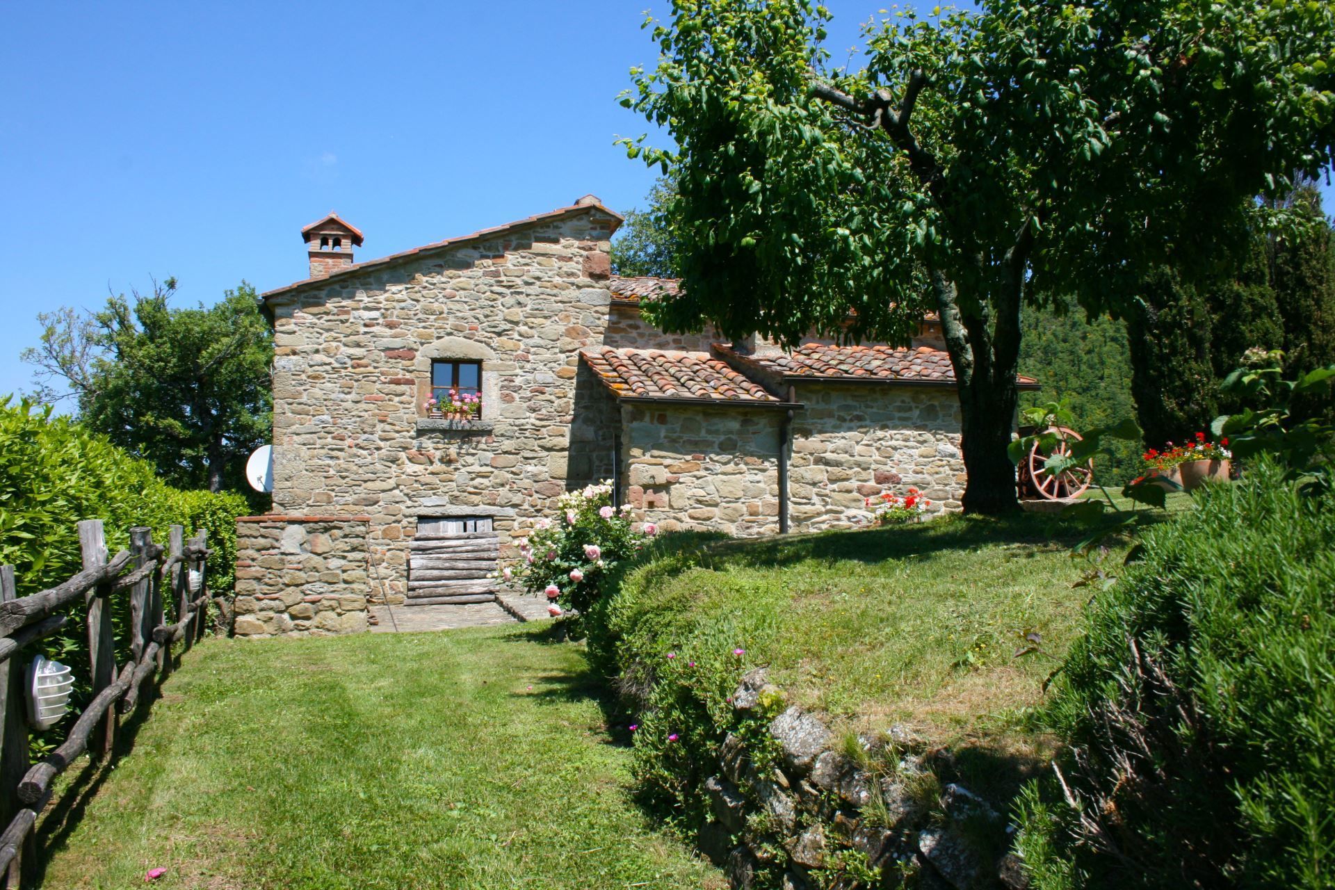 The house is surrounded by a large and panoramic garden, full of flowers and equipped with a very special pergola, made in the old pigsty, with wooden table and benches and coloured cushions. At your disposal there is also a barbecue and a wood-burning oven placed not far from the pergola, a perfect corner for your dinners and barbecues with family and friends.