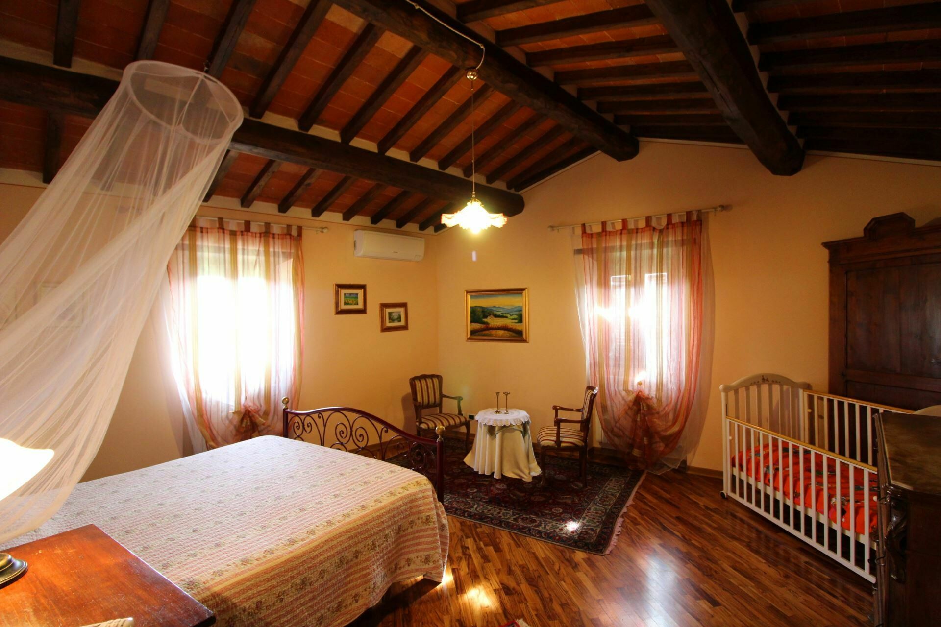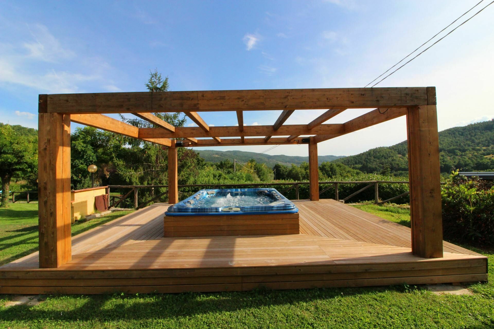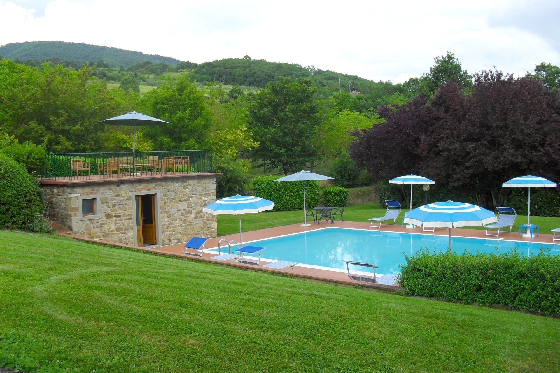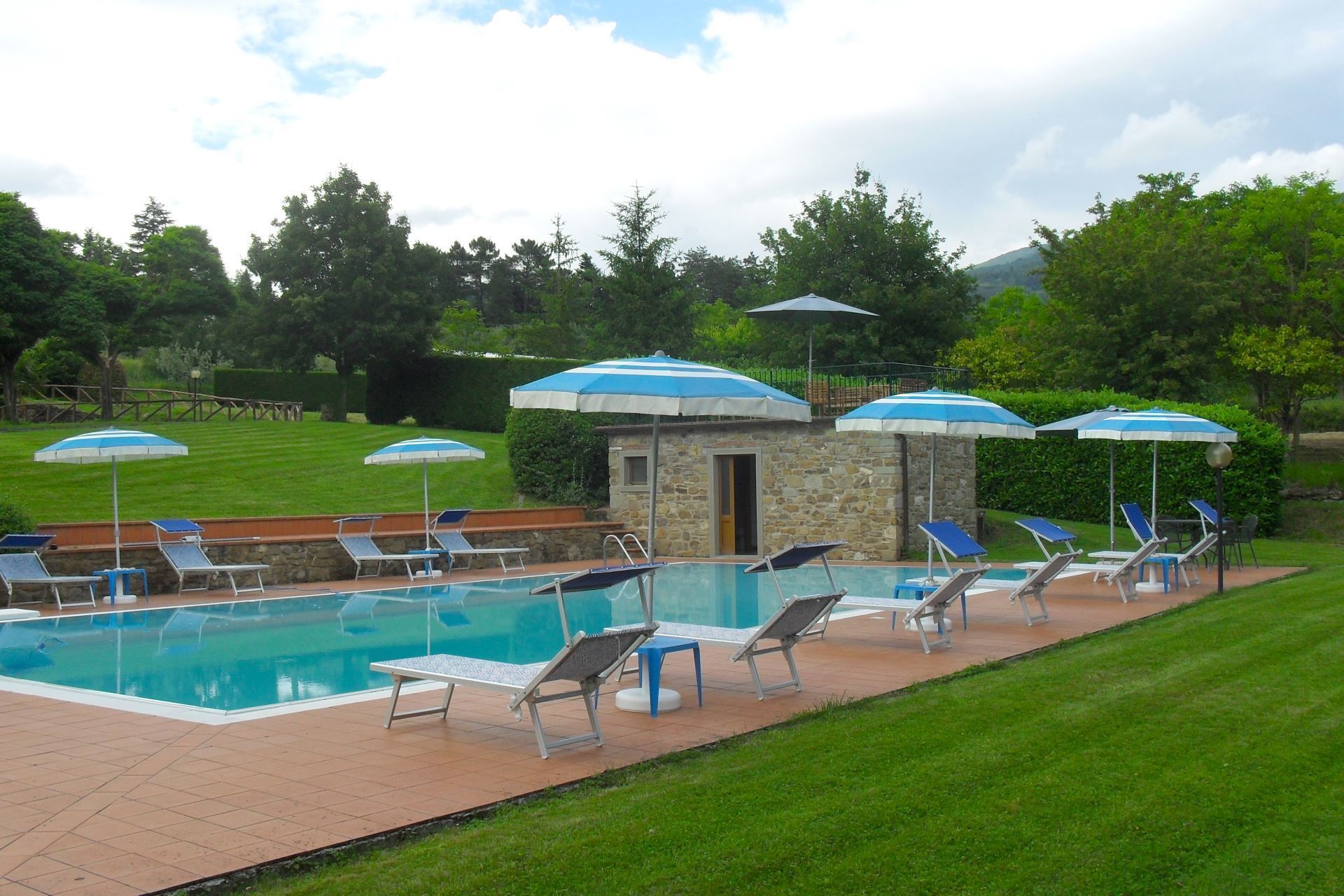 An original stone farmhouse at the gateway to the green Casentino valley and north of the city of Arezzo. The villa Casale Lorenzo with its beautiful fenced park, the large private swimming pool (size 15 x 8 m - depth 1,00 - 2,40 m - open from 01st May to 30th September) with changing room, bathroom with shower and equipped solarium, the relaxing Jacuzzi (Extra payment required) offers wide space for everyone to enjoy an unforgettable holiday with family or friends. You won't be able to give up a dip in the pool, a barbecue on the cool furnished porch or an afternoon in the Jacuzzi with a good glass of wine. Also your small size four-legged friends are welcome here (extra charge could be required).