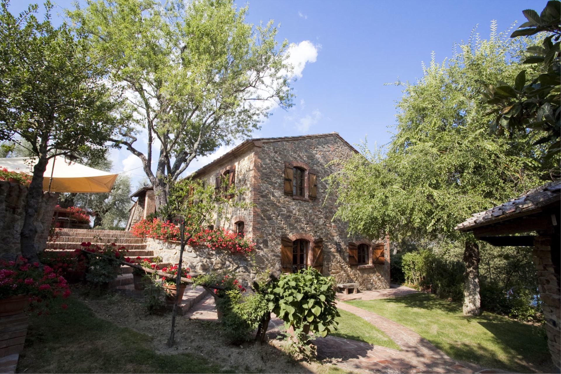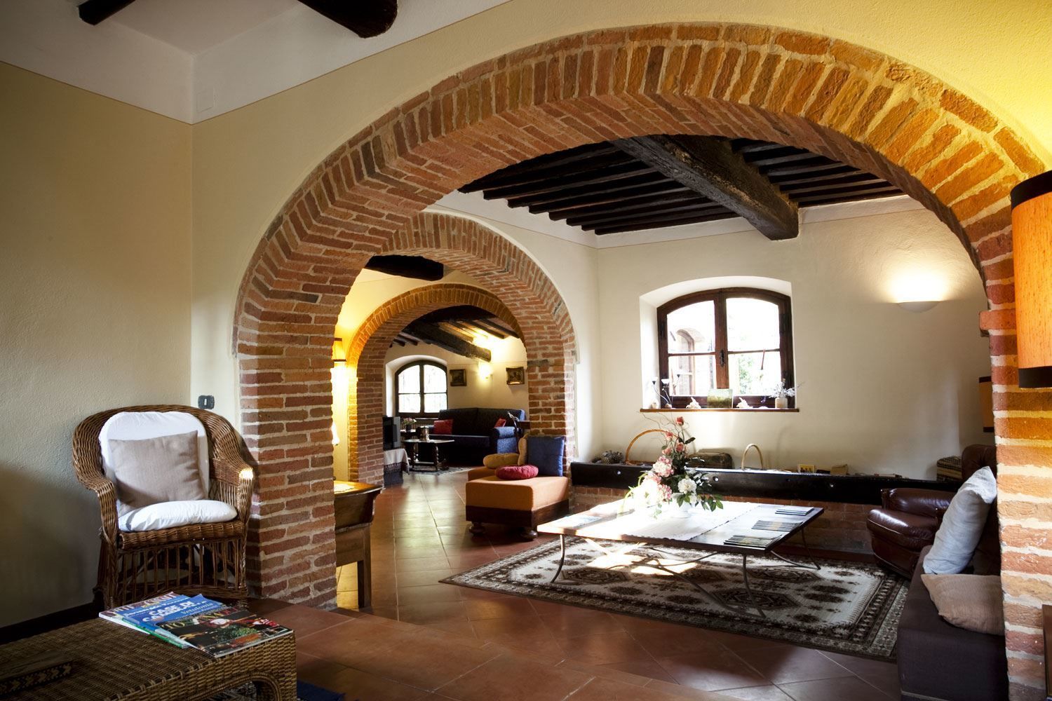 On the green hills around Siena. Beautiful and characteristic villa made of stone and bricks and completely restored to be a welcoming holiday home, situated on the green hills of the Siena countryside, 6 km far from the village of Sinalunga endowed with every kind of shops and services.