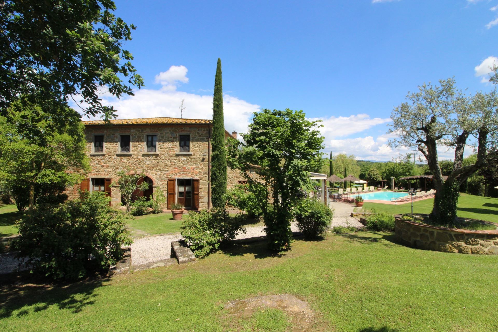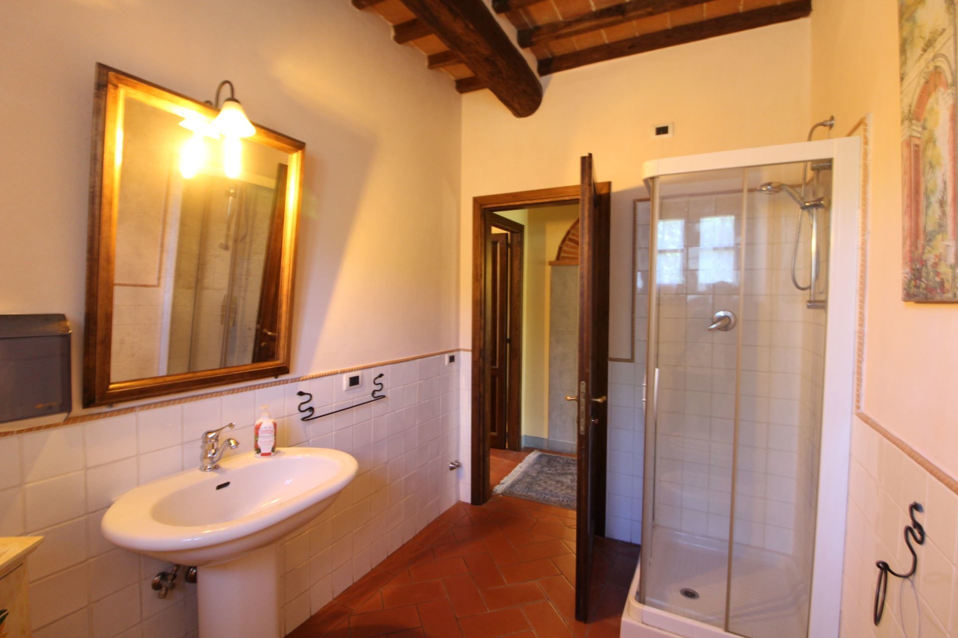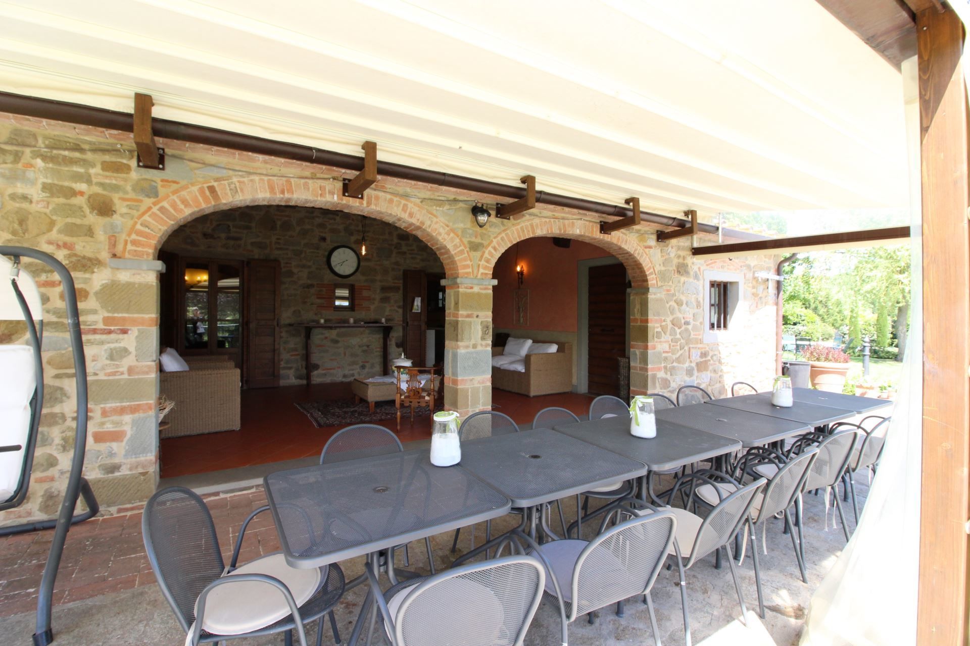 The villa is located at the foot of the first wooded hills, which mark the border between Valdichiana and Valdarno, from here you can make even daily excursions, towards the two valleys, dotted with small villages nestled in the Tuscan countryside. In Monte San Savino, which is just a few kilometres away, it will be pleasant to spend evenings out, dining in typical restaurants or enjoying an aperitif sitting at tables in the colourful cobbled streets.