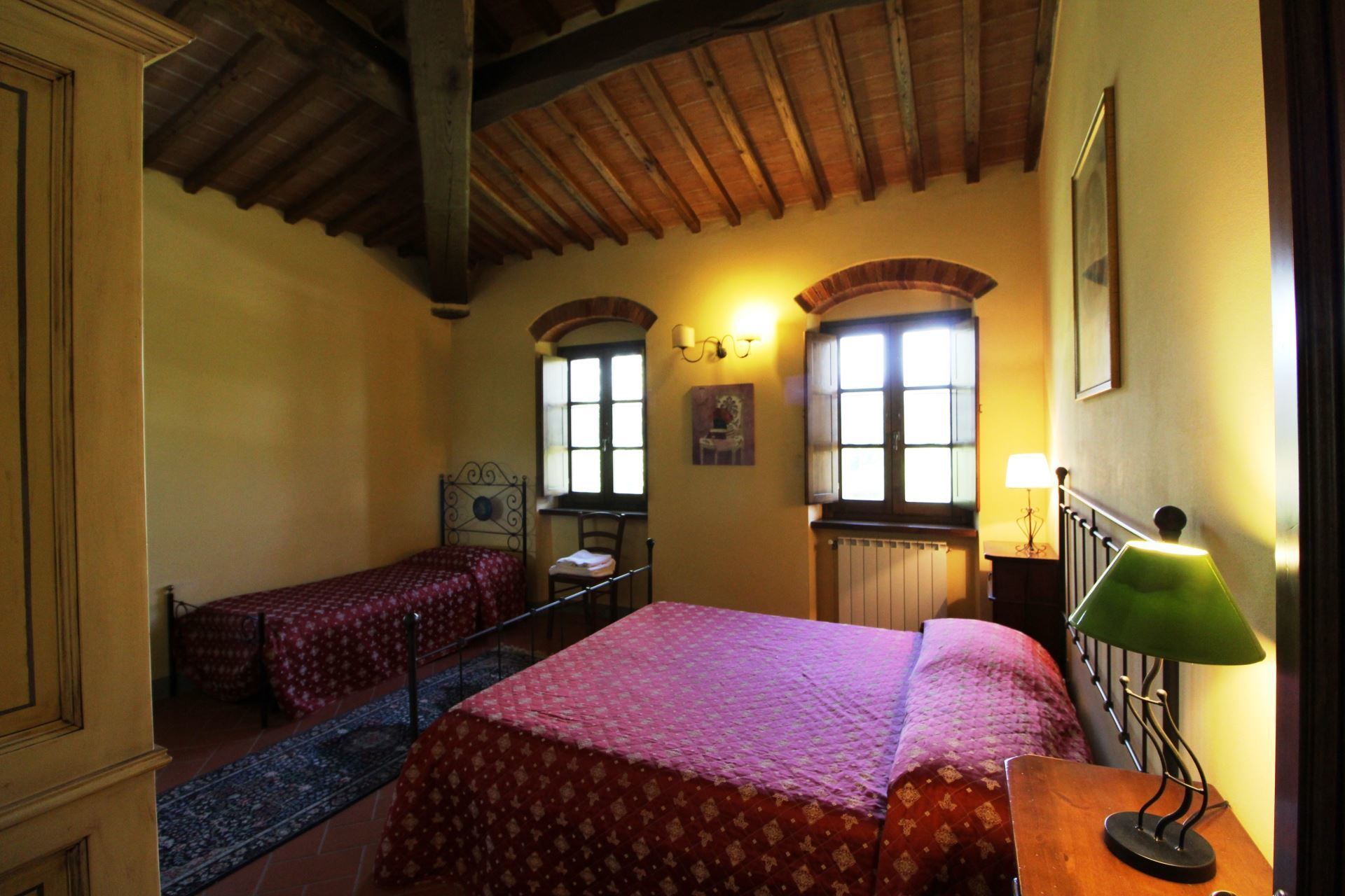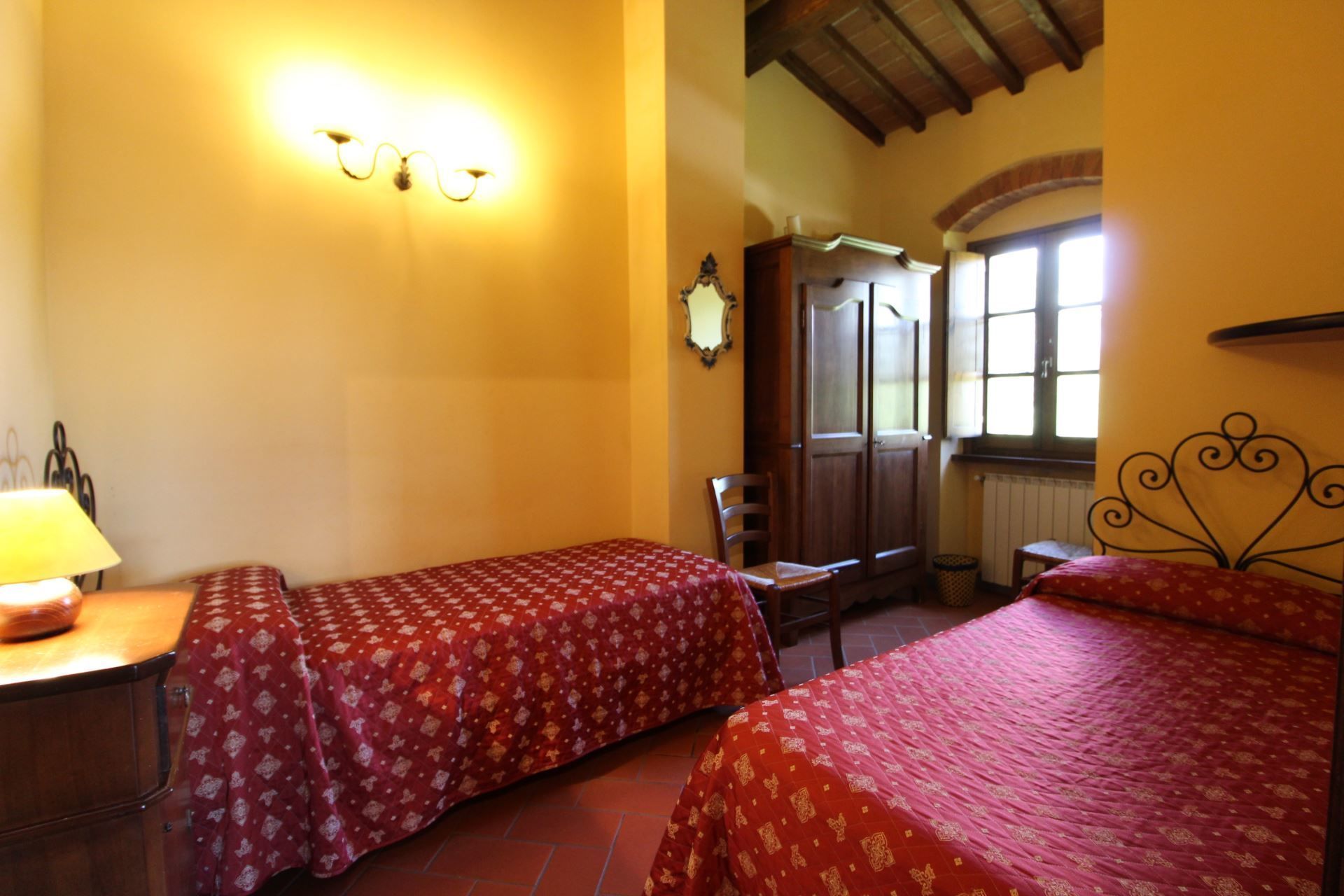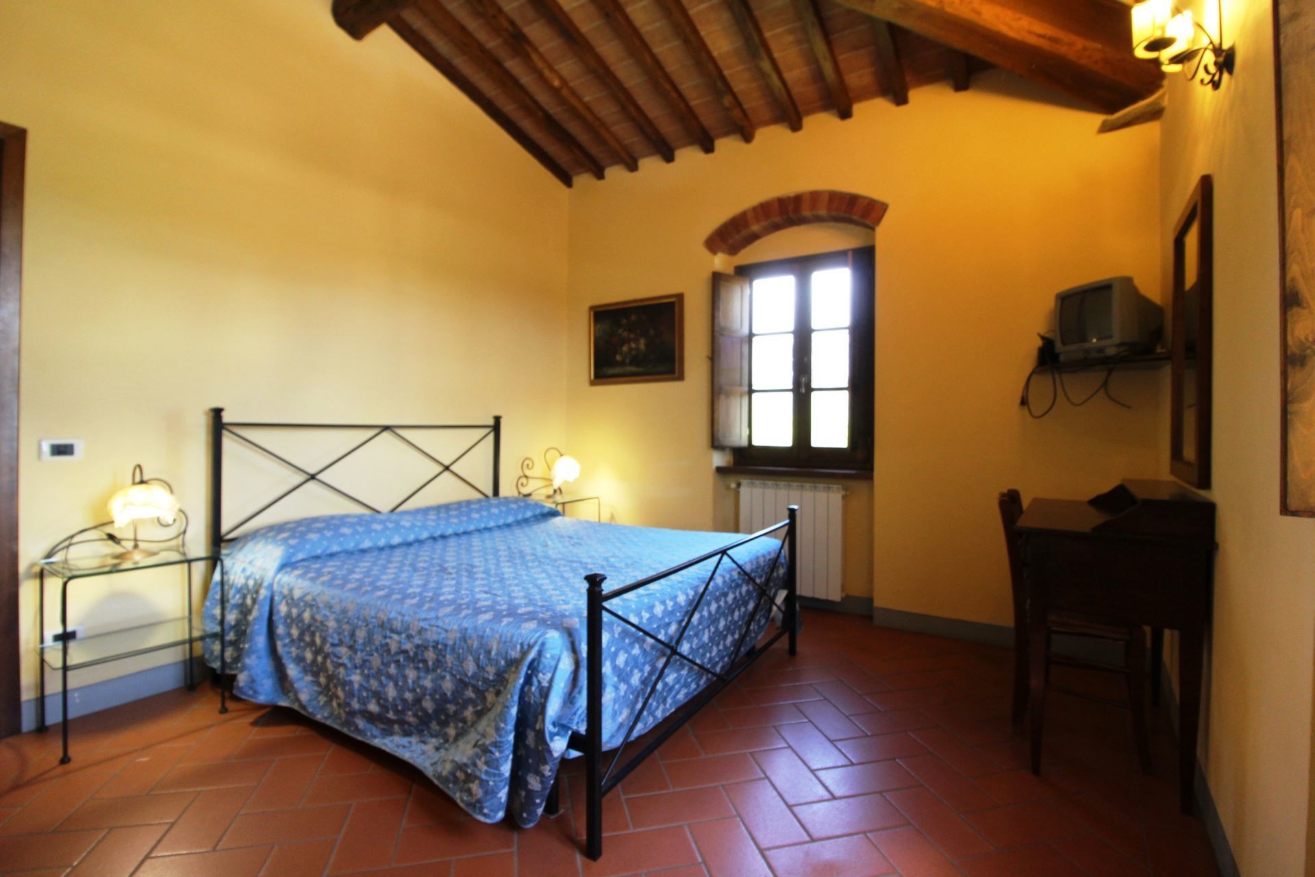 La Quiete is a very old farmhouse that preserves intact the characteristics of the rural architecture. The villa is lovingly preserved by its owners, and if you are lucky enough to stay here, its wooden ceilings, ancient brick arches, Tuscan terracotta floors and elegant furnishings will welcome you into a very special charm, made of old, simple and essential things. At La Quiete you will feel at home, in a warm and cosy atmosphere.