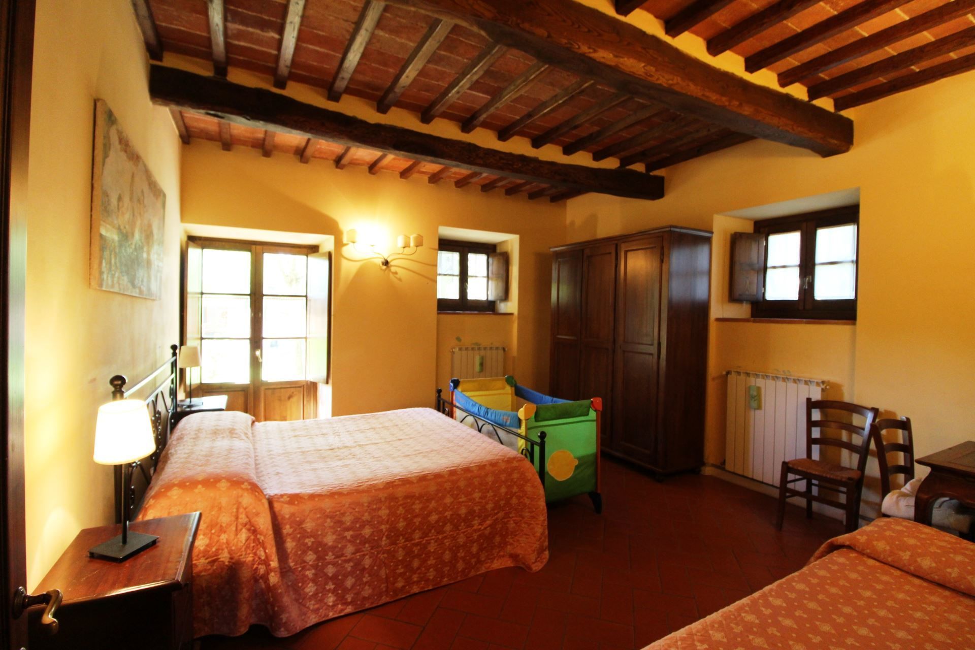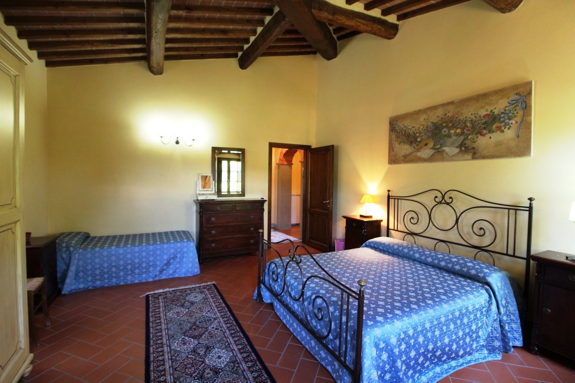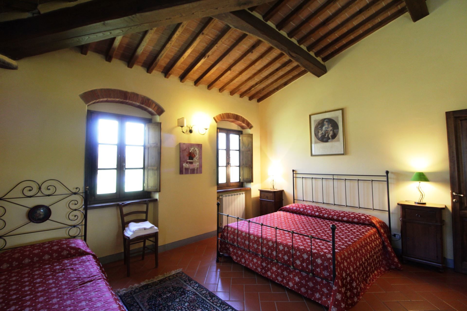 La Quiete is a very old farmhouse that preserves intact the characteristics of the rural architecture. The villa is lovingly preserved by its owners, and if you are lucky enough to stay here, its wooden ceilings, ancient brick arches, Tuscan terracotta floors and elegant furnishings will welcome you into a very special charm, made of old, simple and essential things. At La Quiete you will feel at home, in a warm and cosy atmosphere.