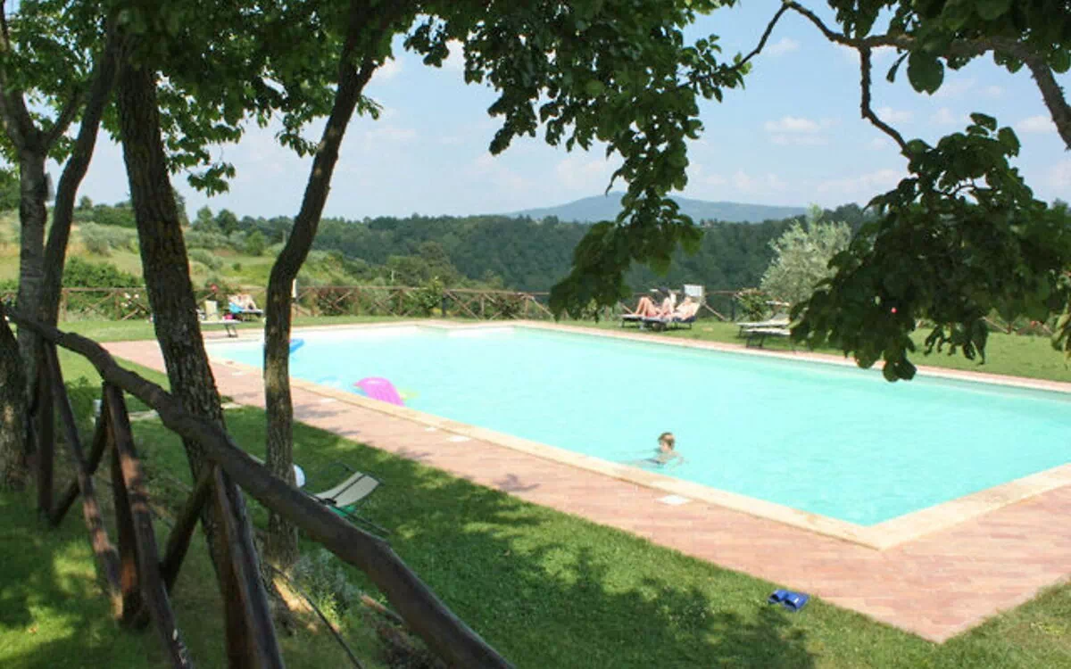 Country house "Città della Pieve", 600 m a.s.l., renovated. 6 houses in the residence. 16 apartments in the property. In the resort 1 km from the centre of Città della Pieve, in a sunny, elevated position, in the countryside. For shared use: park, terraced garden, swimming pool (19 x 9 m, 01.05.-30.09.). Outdoor shower, garden furniture, barbecue, children's playground. In the house: bar, WiFi, relaxation room, washing machine (extra). Breakfast (extra). Parking on the premises. Shop 800 m, supermarket 1 km, restaurant 800 m, railway station "Chiusi Scalo" 10 km. Nearby attractions: Montepulciano 30 km, Orvieto 35 km, Perugia 40 km. Well-known lakes can easily be reached: Lago Trasimeno 20 km. Please note: There are more similar properties for rent in this same residence.