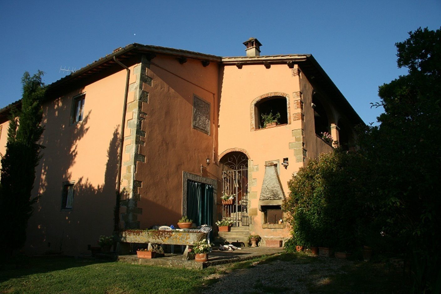 In the heart of the Balze is the property "IL CASOLARE", an independent apartment in a farmhouse situated in a valley between the green hills of the Arno Valley. View of the countryside, 30 m from the main road. Exclusive private garden in front of the house with a pergola for outdoor dining.