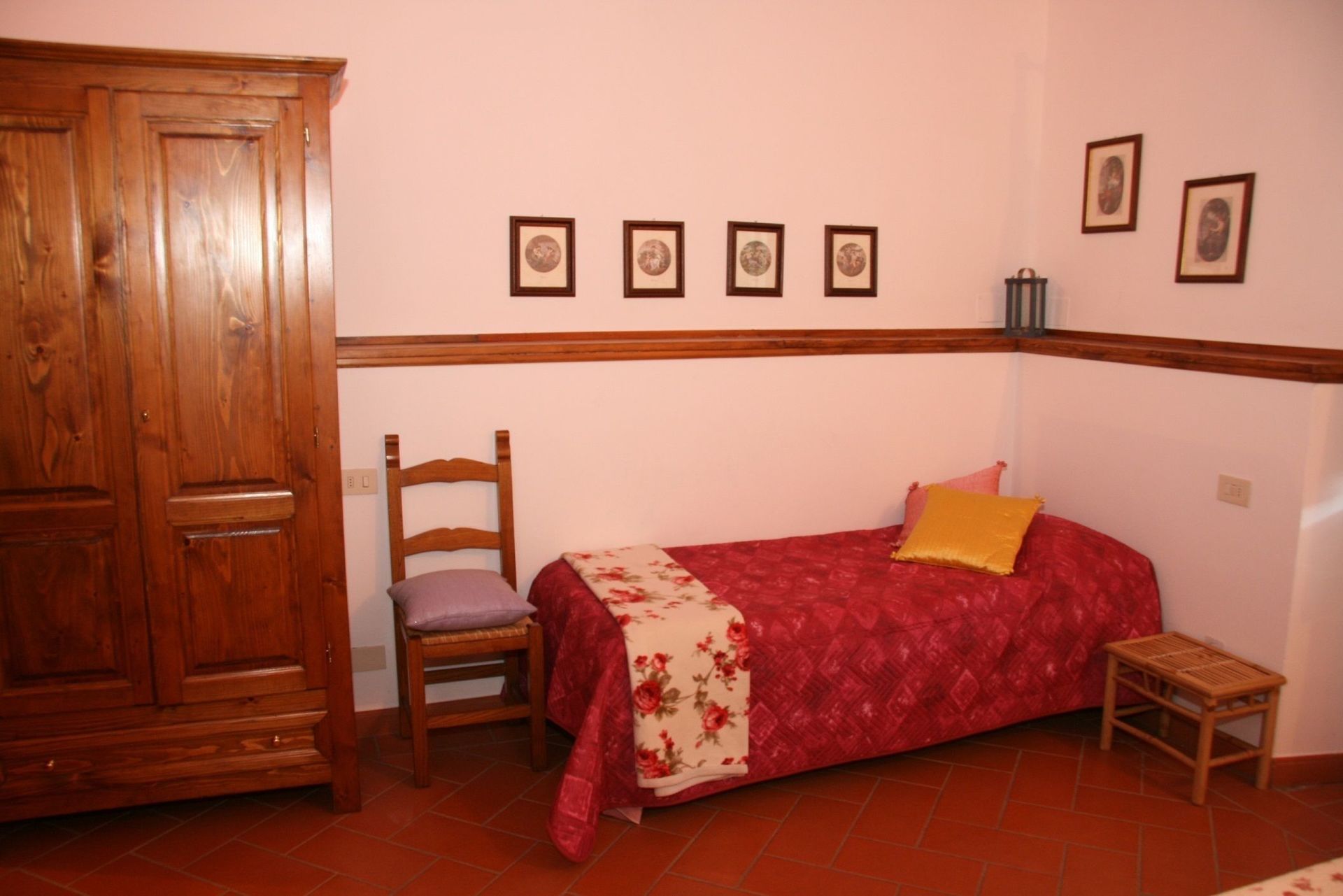 3) Pink bedroom: double bed + 1 single bed