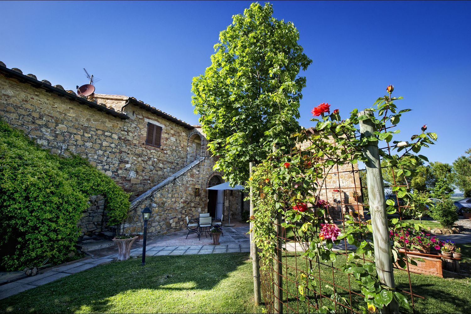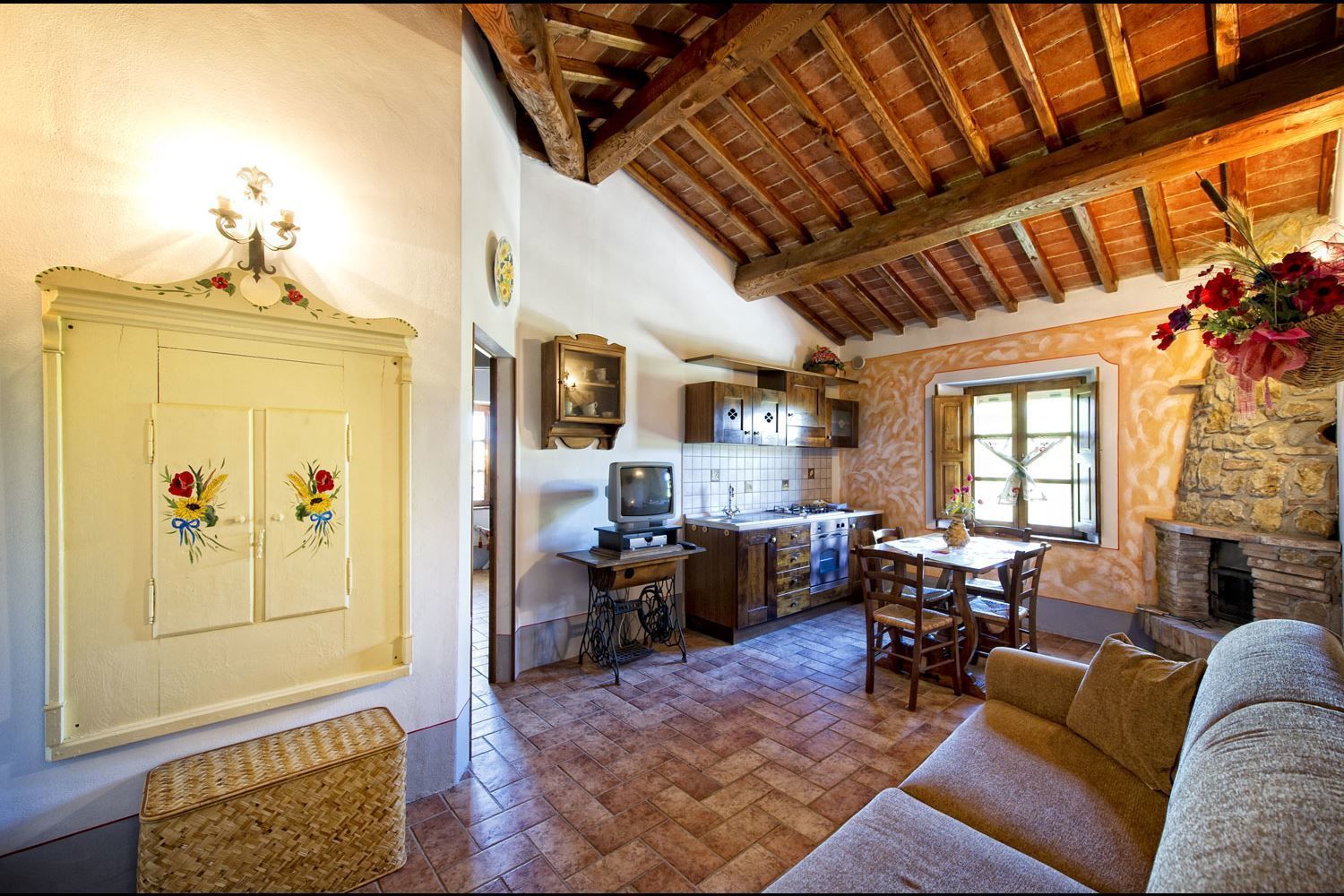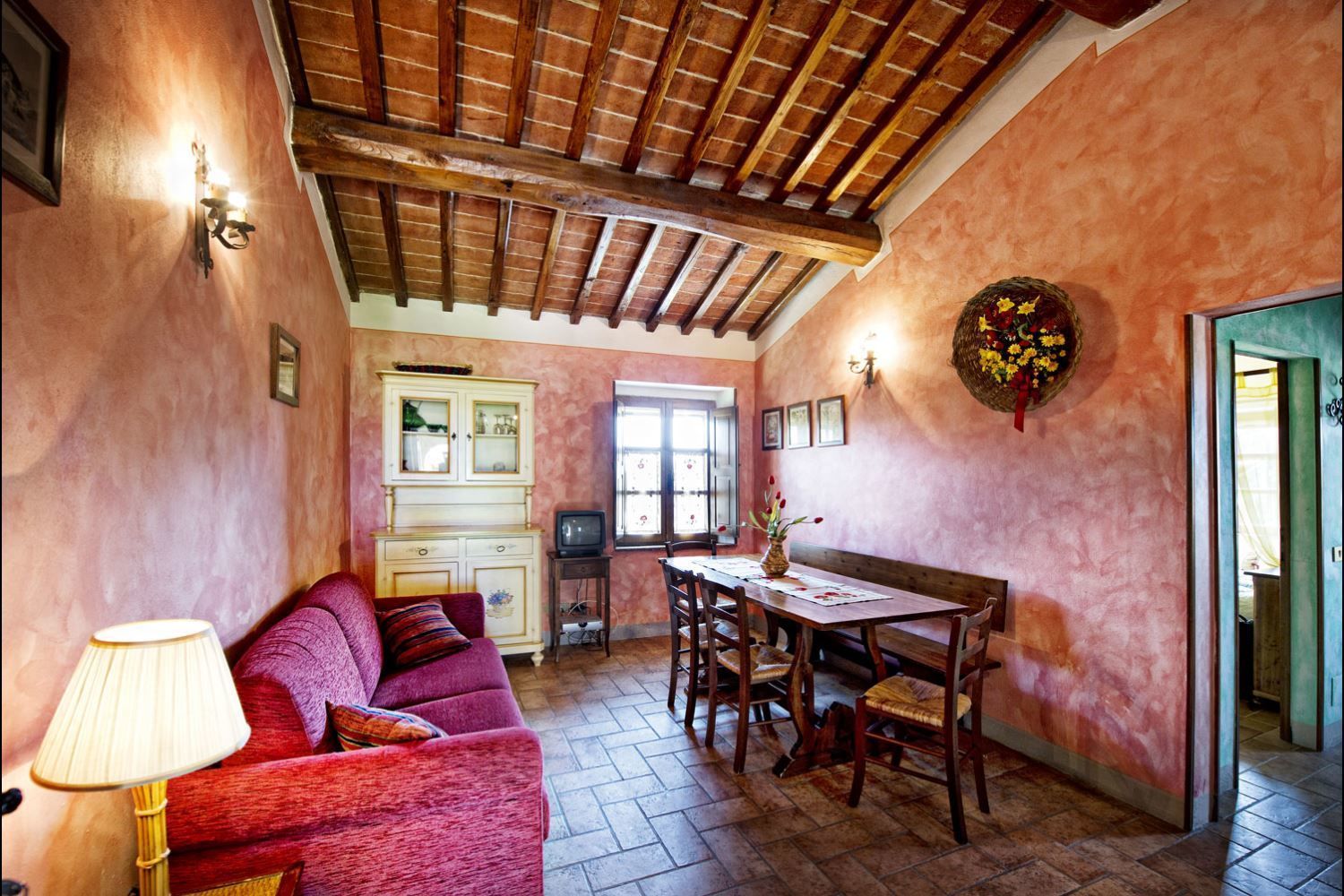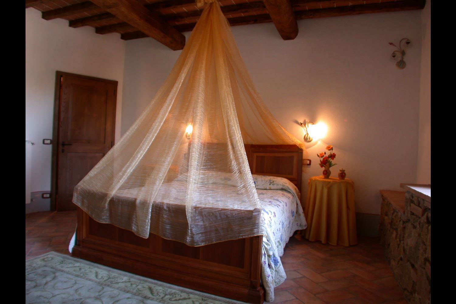 The farmhouse is located on a high, extremely panoramic hill within a large farm, and consists of the main house divided into 4 apartmentss and the 'Granaio' where we find another 4 typical units. Stone, terracotta and wooden beams are the distinguishing features.