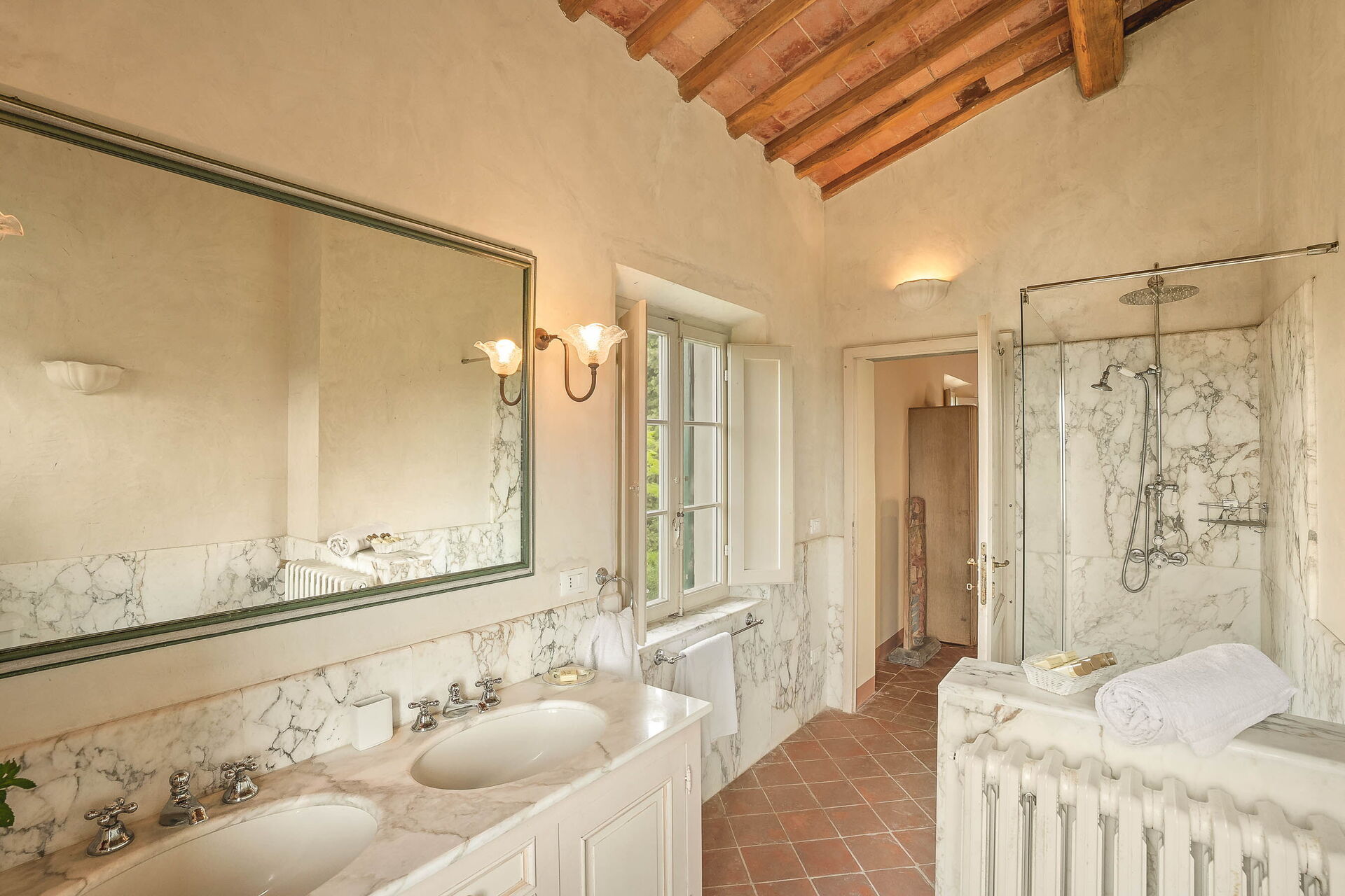 Ved ankomst vil I møde en flot ren velholdt ejendom med udsigt over bakkerne ideel til rolig ferie i Toscana. Til jeres store nydelse vil I finde en privat pool, hvor I kan slappe af, mens I nyder en dejlig kold drik efter en hektisk dag med shopping. Til jeres store nydelse er der på ejendommen barbecue og gårdhave. At nyde et måltid med venner og familie er en stor del af den toskanske kultur. Benyt det velekviperede køkken til madlavning med lokale produkter, når du er på ferie. Køkkenet indeholder kaffemaskine, mikroovn, brødrister, komfur og køleskab, samt, masser af service og bestik til op til 14 personer. Spis 'al fresco' som en ægte toskaner. Den fuldt møblerede veranda er det ideele sted for at nyde sit måltid, familien og det skønne toskanske vejr.