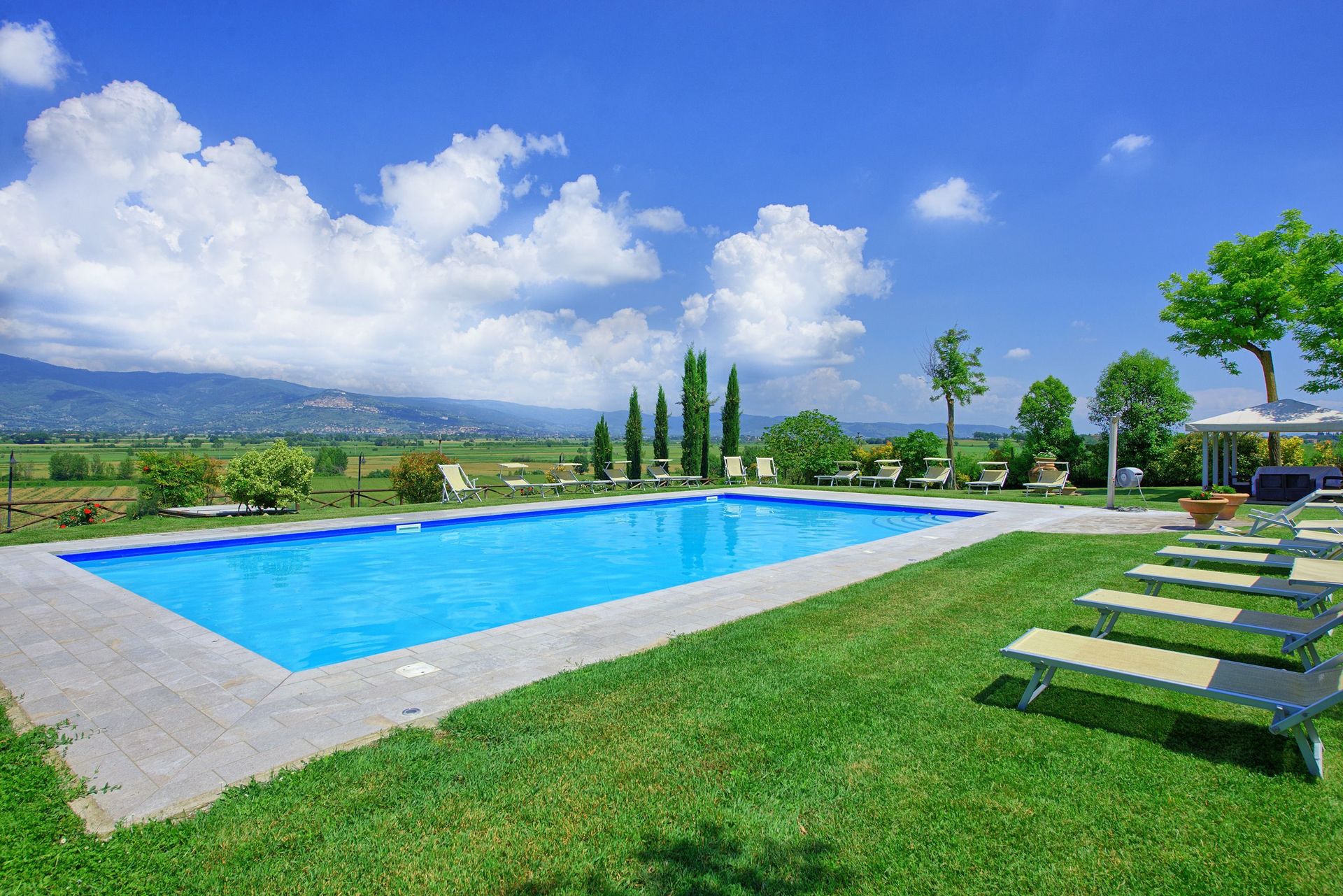 Stor villa med pool nær Cortona i Toscana. Feriehuset er perfekt til store grupper der ønsker at holde ferie sammen i Italien.