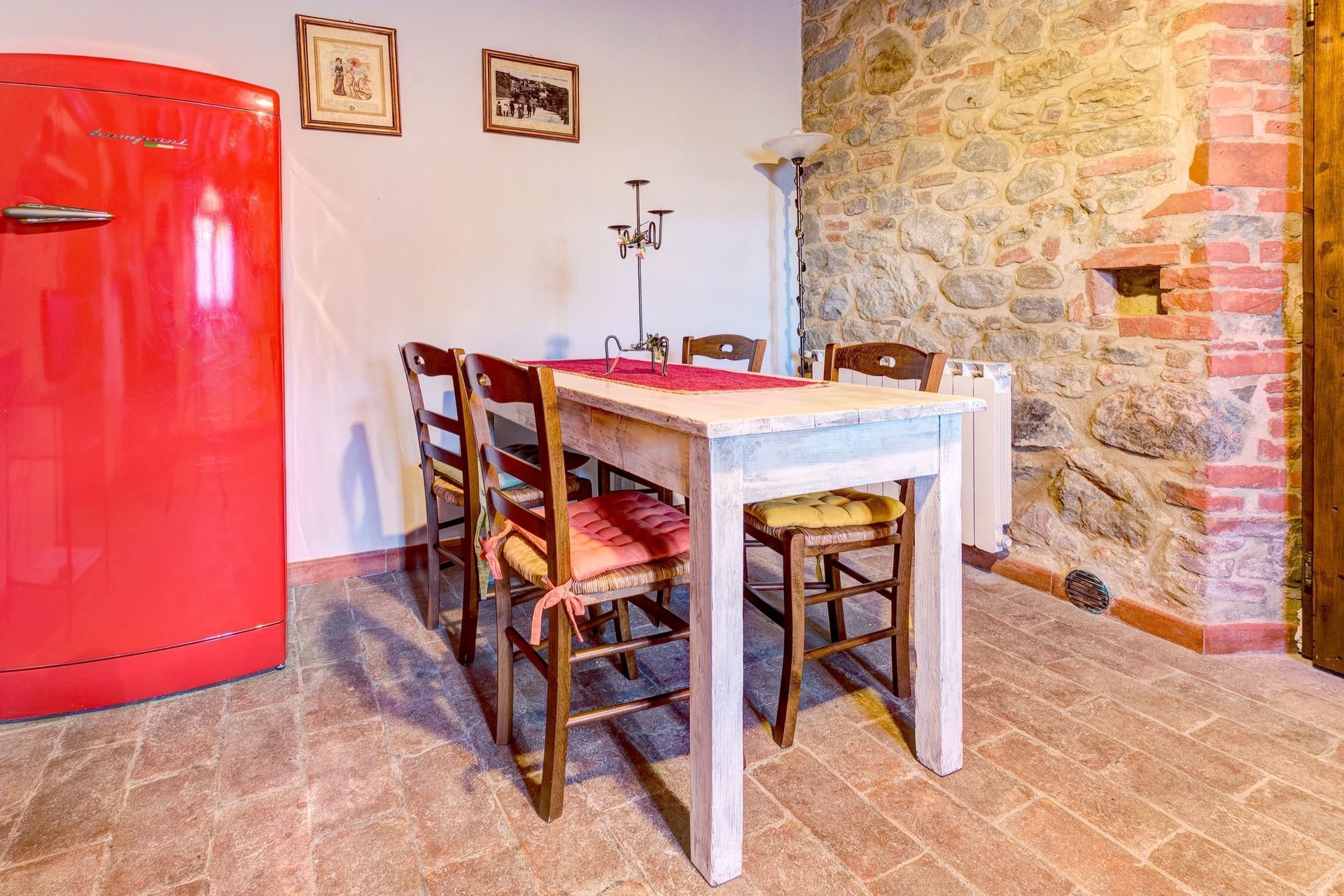 Ejendommen er beliggende i rolige omgivelser og har panoramaudsigt over bakkerne omkring den smukke by Cortona. Ejendommen er også et perfekt udgangspunkt for at nå andre berømte steder i Toscana som Arezzo, Montepulciano, Pienza, og Perugia og Assisi i Umbrien.