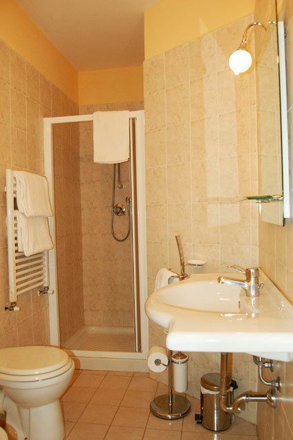 Bedroom with double bed and 1 single bed (air conditioning) Ensuite bathroom with shower