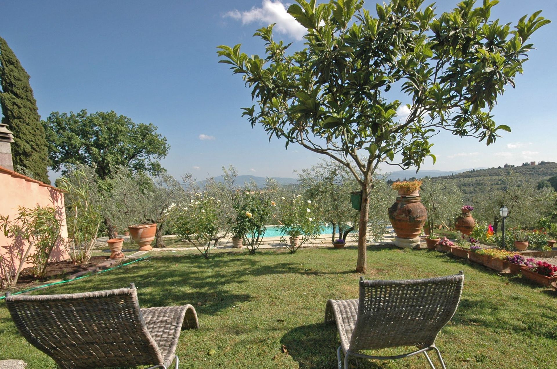 There were several opportunities to enjoy the sun and the Tuscan flair on the large property. Great view! The pool was a treat. For people who like peace and enjoyment, this is a direct hit.The landlords were very friendly and took care of every concern immediately.