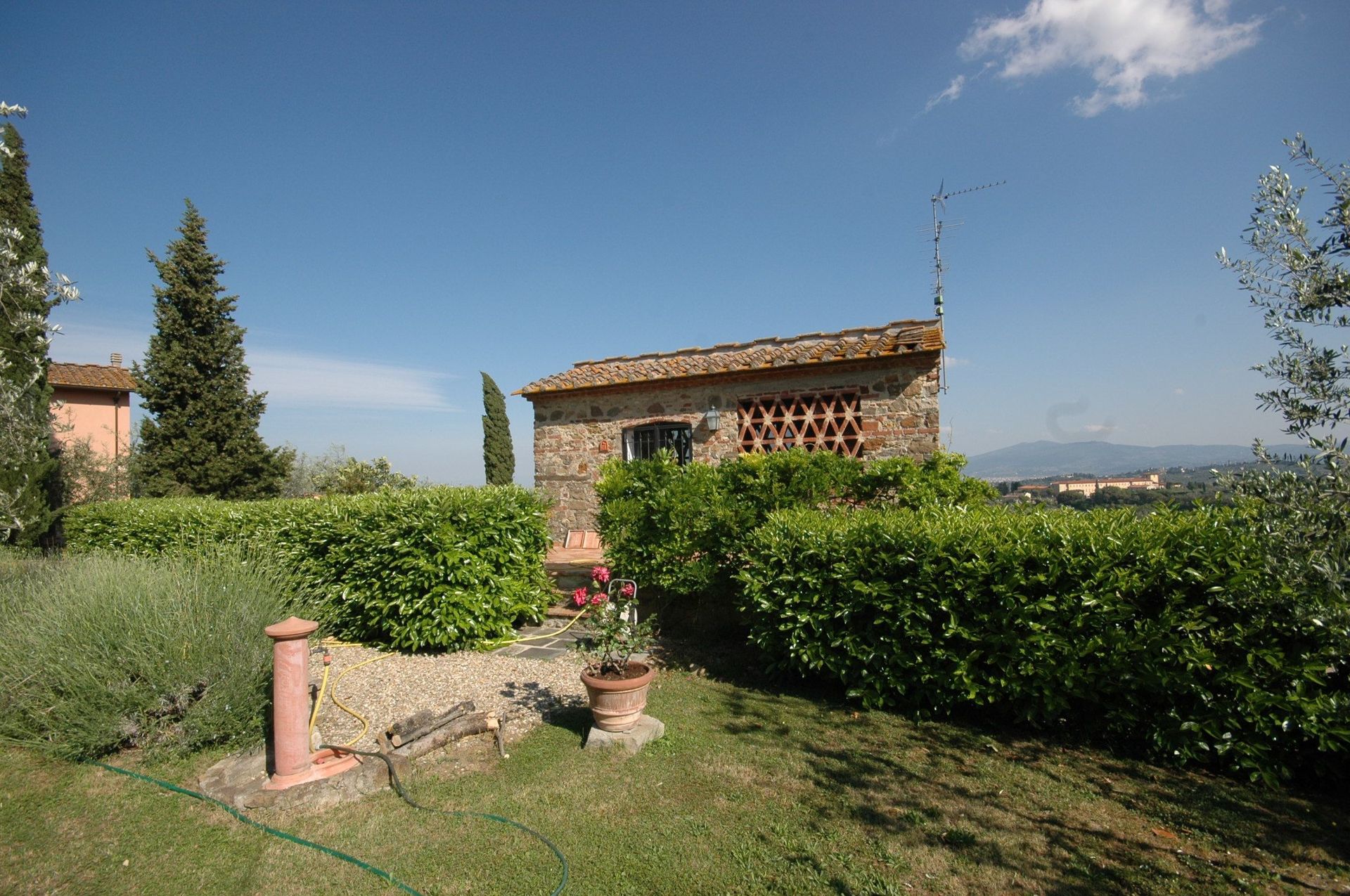 Distances: Impruneta with geeneral stores 4 km away, Florence 15 km away, Greve in Chianti 20 km, San Gimignano 50 km away, Siena 65 km, Arezzo 80 km away, Pisa (airport) 95 km away..