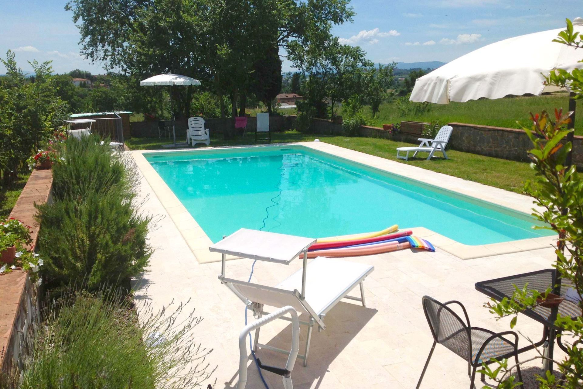 The village of Foiano della Chiana, with all kinds of shops and services, is only 2 km away and can also be reached on foot. The house is furnished with typical Tuscan style furniture and fits in perfectly with its construction characteristics.
