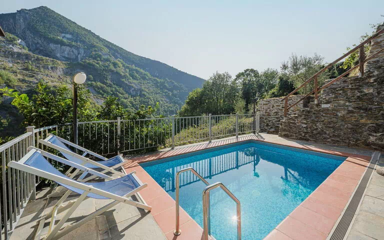 Seravezza: Hyggeligt, rustikt enfamiliehus "L'Aia", på 2 etager, fritstående. 2 huse i ferieområdet. 1 km fra centrum af Seravezza, rolig, solrige beliggenhed ved bakke, 50 m fra skovbryn, 9 km fra havet, 9 km fra stranden, i en blind vej, i det grønne. Til alene benyttelse: have 50 m2 med græsplane og planter, pool (4 x 3 m, 140 cm dyb, Sæsonbestemt tilgængelighed: 19.Maj. - 30.Sep.). Udendørs brus, pergola, terrasse, havemøbler, grill. I anlægget: sauna (ekstra). Boblebad, vaskemaskine (til medbenyttelse). Skift af linned (yderlige ekstras). Udskiftning af håndklæder (yderlige ekstras). Stejl, smal tilkørsel til til huset. Parkeringsplads ved huset på grunden. Fødevarebutik 1 km, supermarked 1 km, restaurant 1 km, busstoppested 800 m, sandstrand "Forte dei Marmi" 11 km. Golfbane (18 hul) 12 km, vandrestier fra huset 30 m. Nærliggende attraktioner: Pietrasanta 5 km, Forte dei Marmi 10 km, Lucca 32 km, Pisa 40 km. Bemærk venligst: bil anbefales. Objoktnummer IT5167.151.1 er beliggende på samme grund.