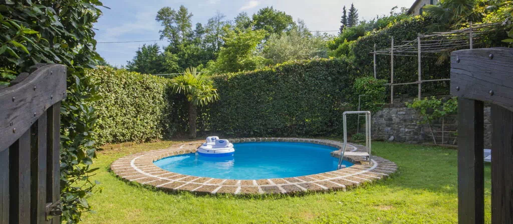 Haven er indhegnet og strækker sig over 400 kvadratmeter med en nyreformet svømmepøl på 7 x 3 meter og 140 cm dybde; poolen er tilgængelig fra 27. april til 5. oktober. Haven er udstyret med havemøbler og et barbecue til udendørs spisning.