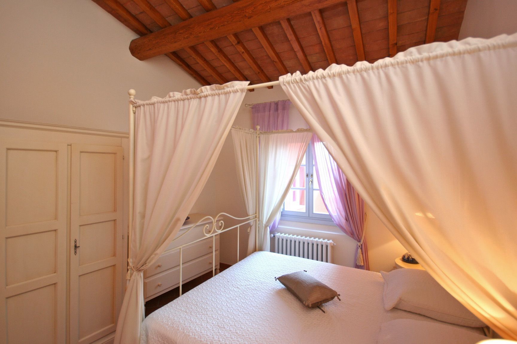 1st floor: dining area (satellite TV) with kitchen corner (microwaves), double bedroom with ensuite bathroom with shower, living-room (satellite TV) with double sofa-bed and dining area, double bedroom with four-poster bed.