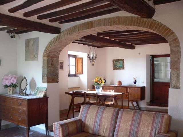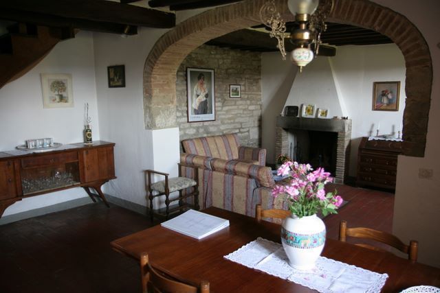 The building, nowadays destined to comfortably welcome Italian and foreigner guests, was for a long time a small church engaged with the Cortonese countryside: the S. Silvestro church, named in several historical evidences, the last one dated 1577 when his manage passed under the control of the territorial cathedral. After that, this church was converted in a classic Tuscan farmhouse, so to have his ancient middle age origin recognizable only to keen and expert eyes: a marvelous sequence of truss crossbeams, a curious window shaped like a bell and an ancient fresco still partly visible representing the saint naming the church.