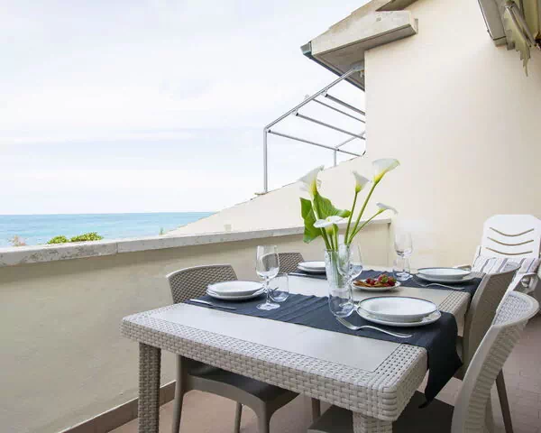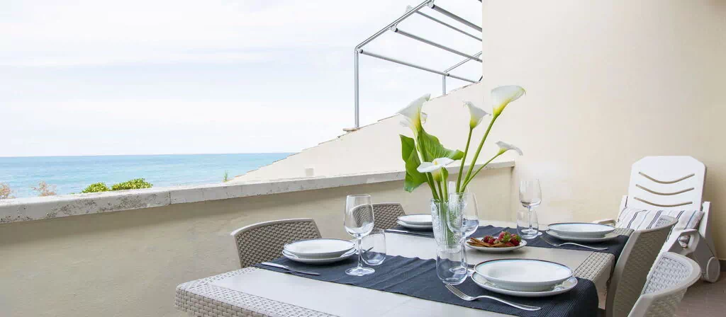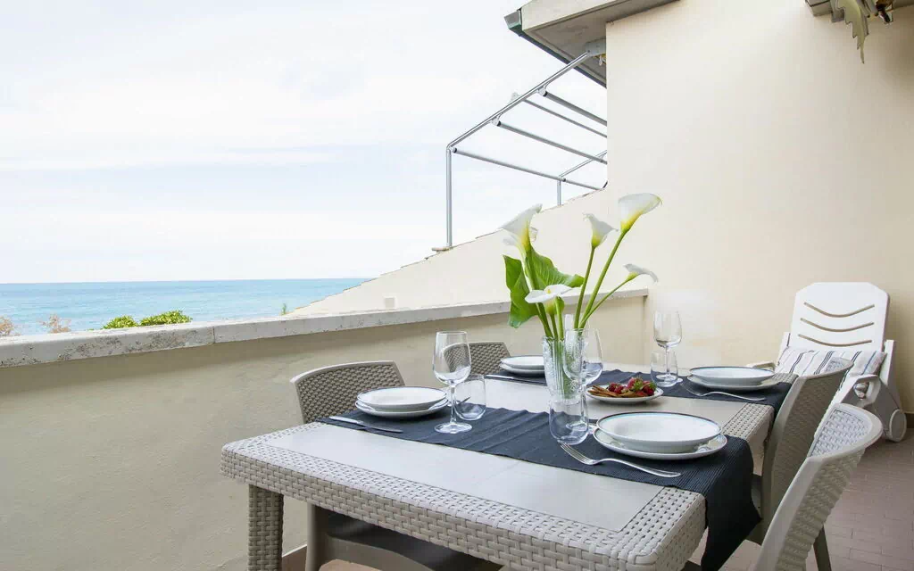 Terrassen og balkonerne er møbleret, hvilket giver mulighed for at nyde udsigten til havet fra flere steder.