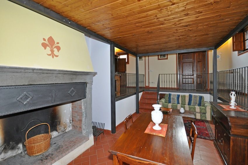 5 steps down: living-room with dining area (non-working fireplace).