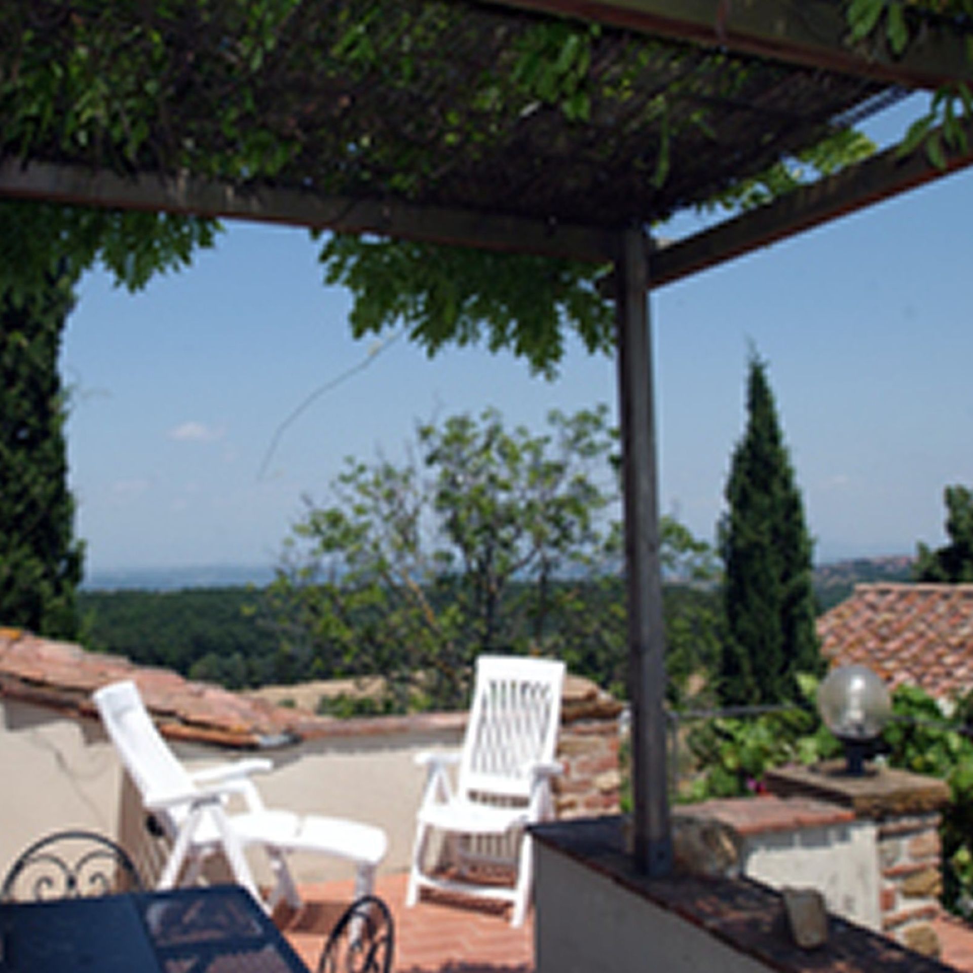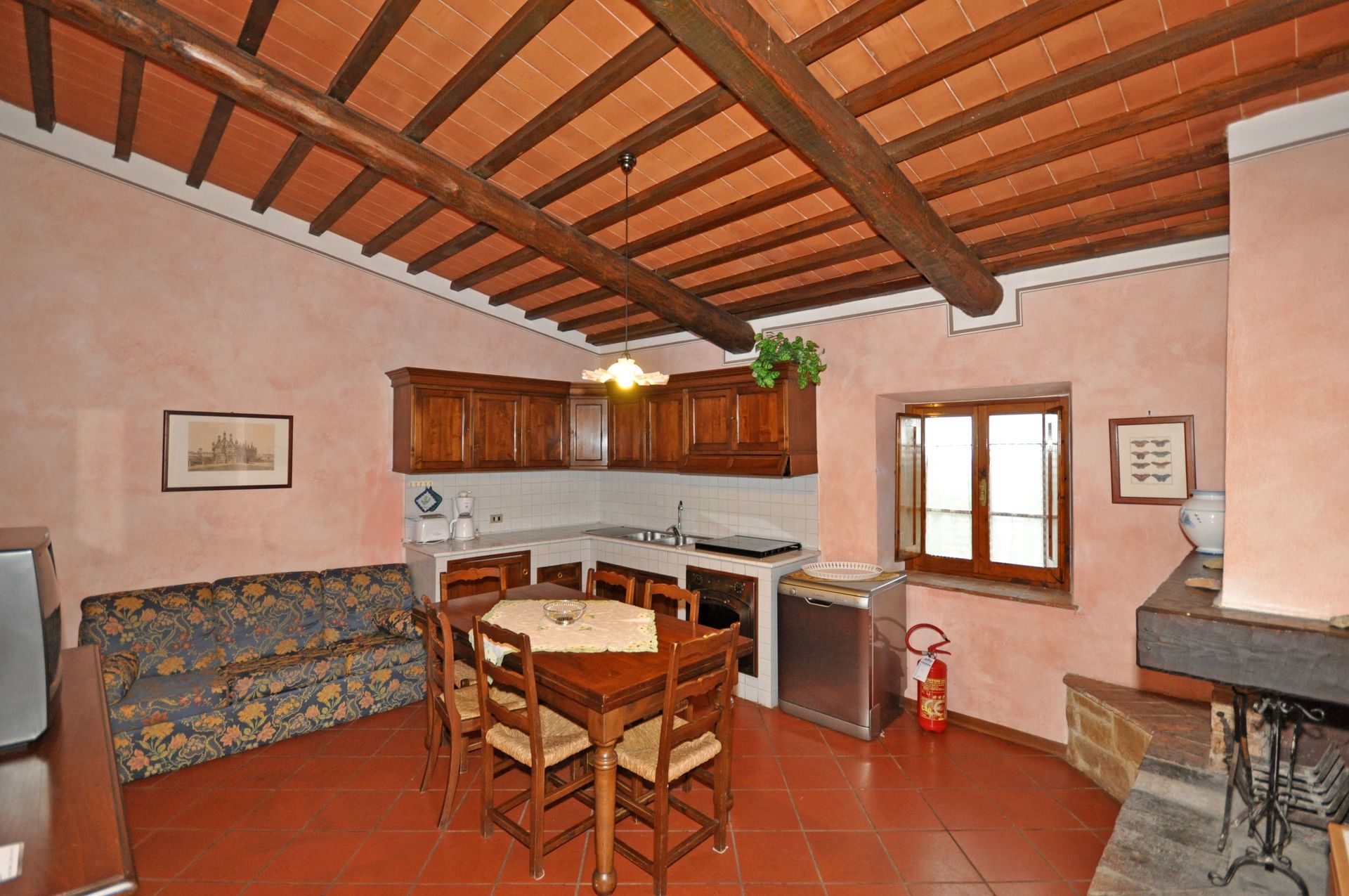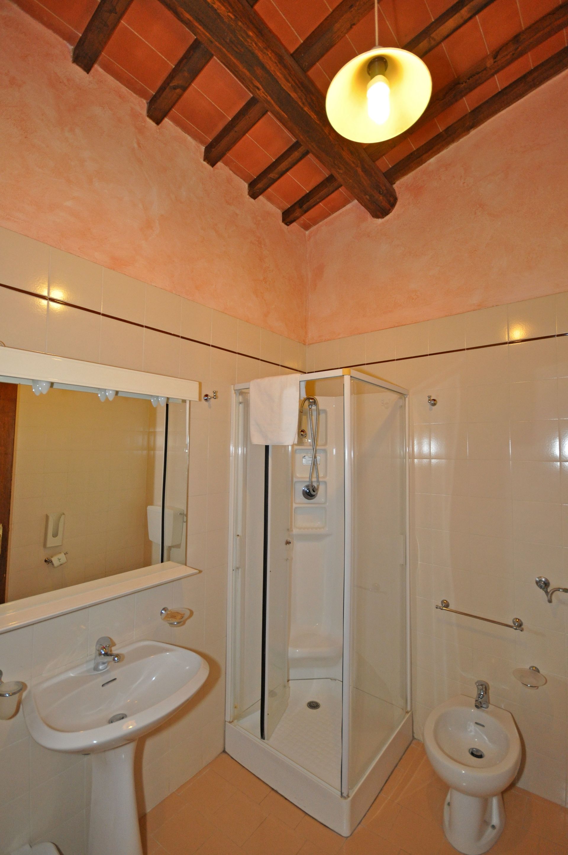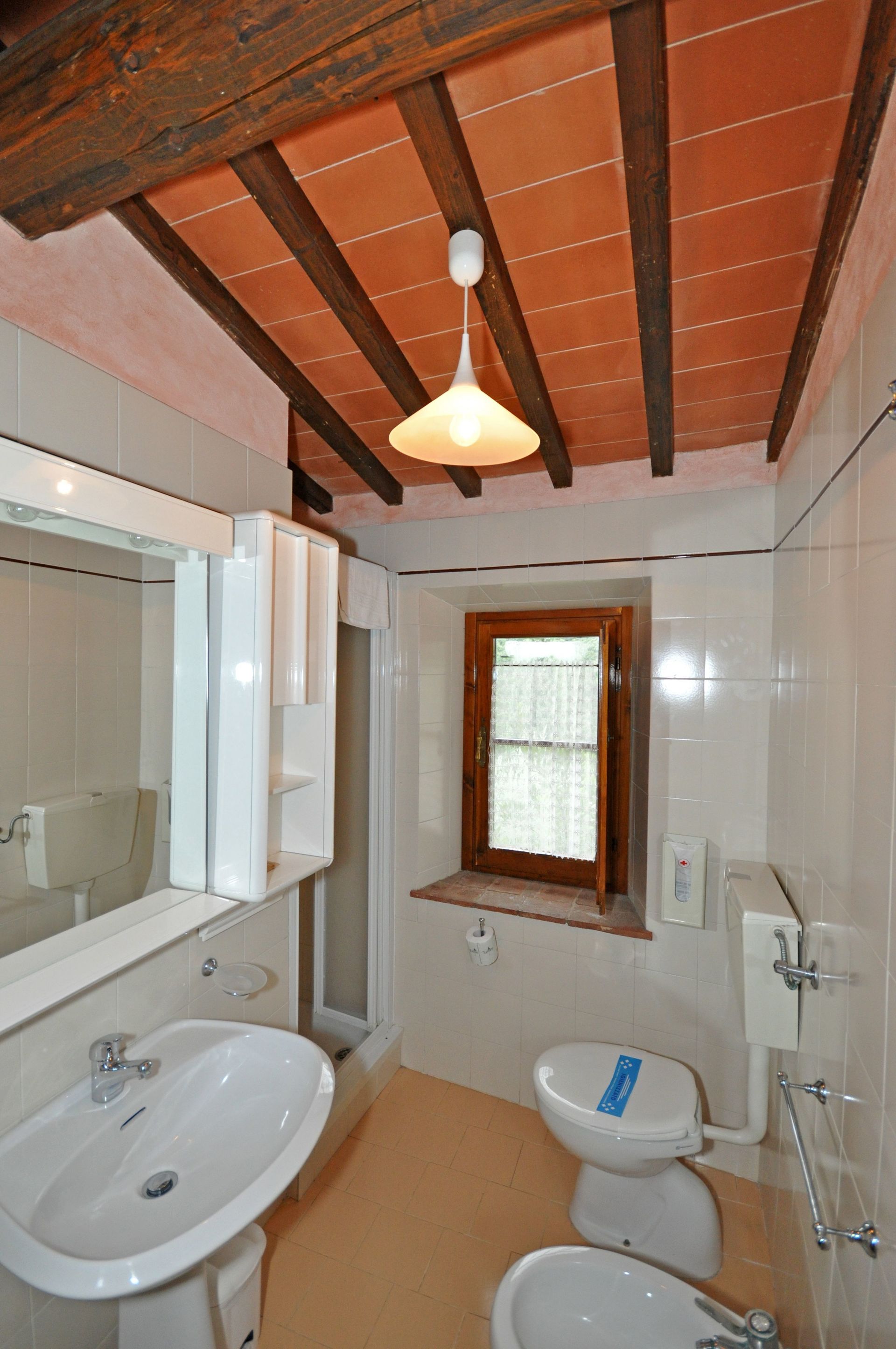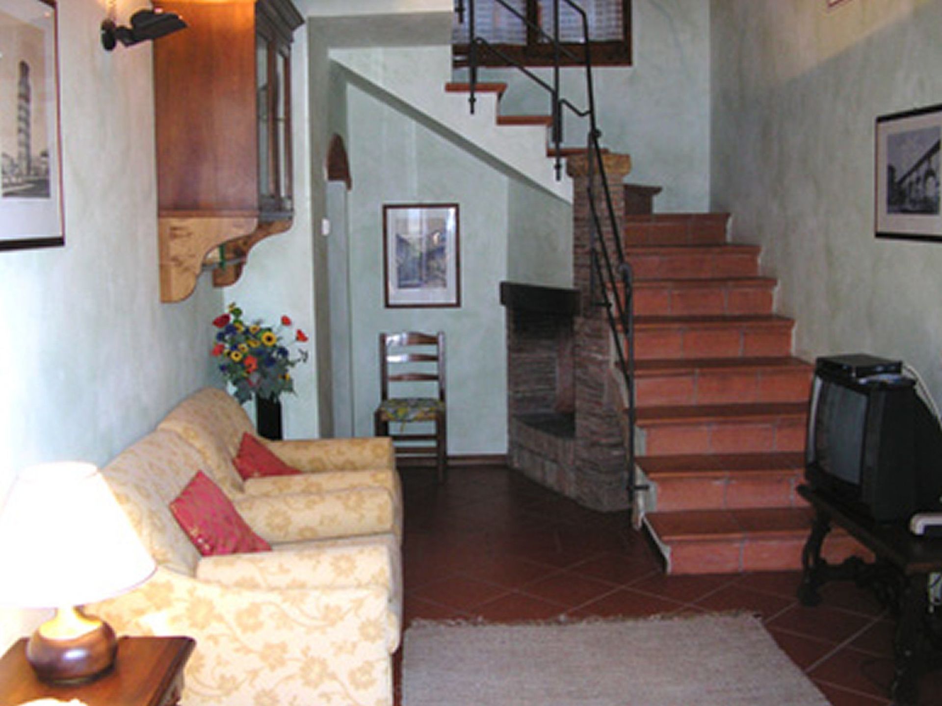 2nd floor: living-room with fireplace, dining area and kitchen corner (oven, small freezer, dishwasher), double bedroom with ensuite bathroom with shower (accessible going up 1 step), bathroom with shower, double bedroom, twin-bedded room, bathroom with shower.