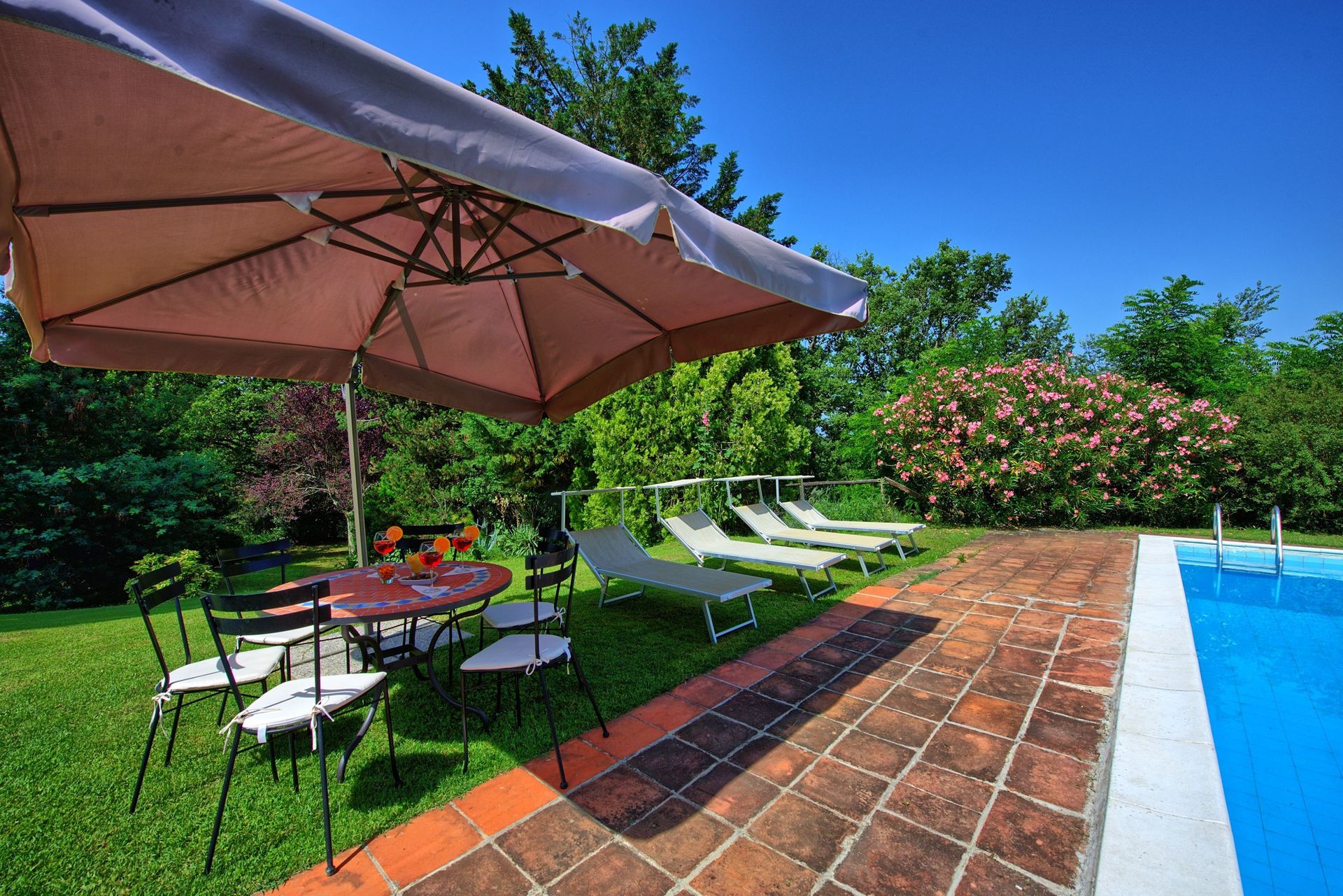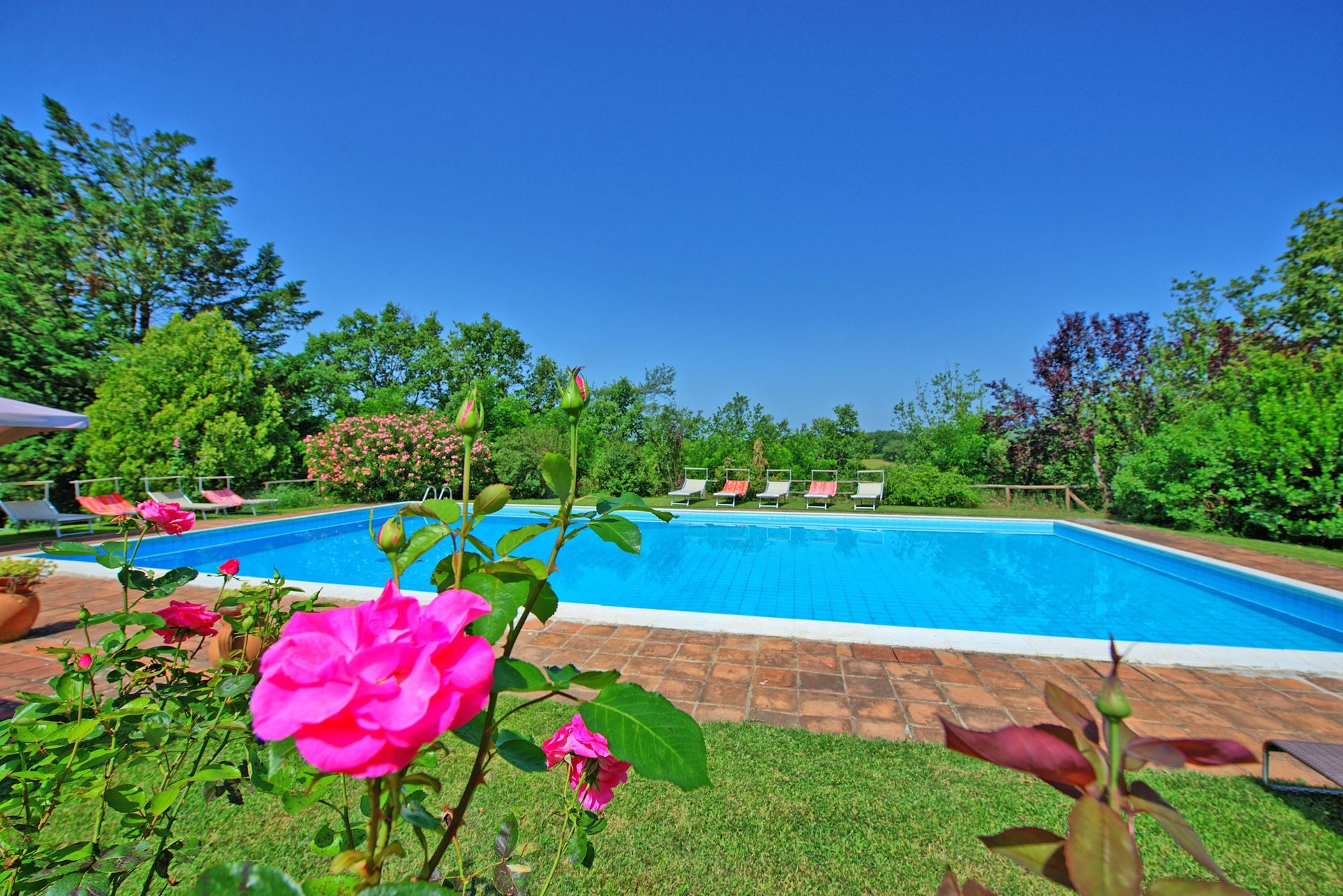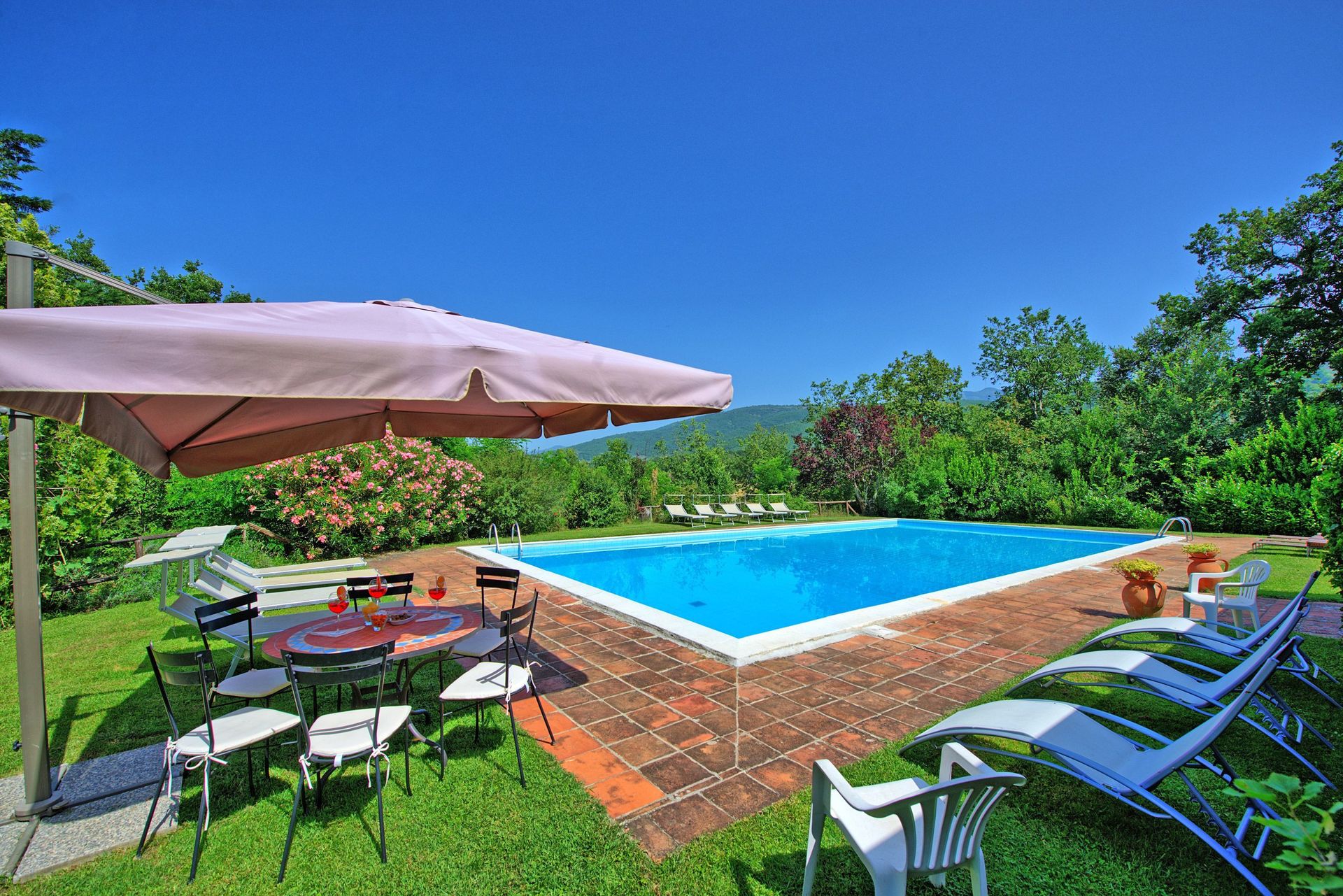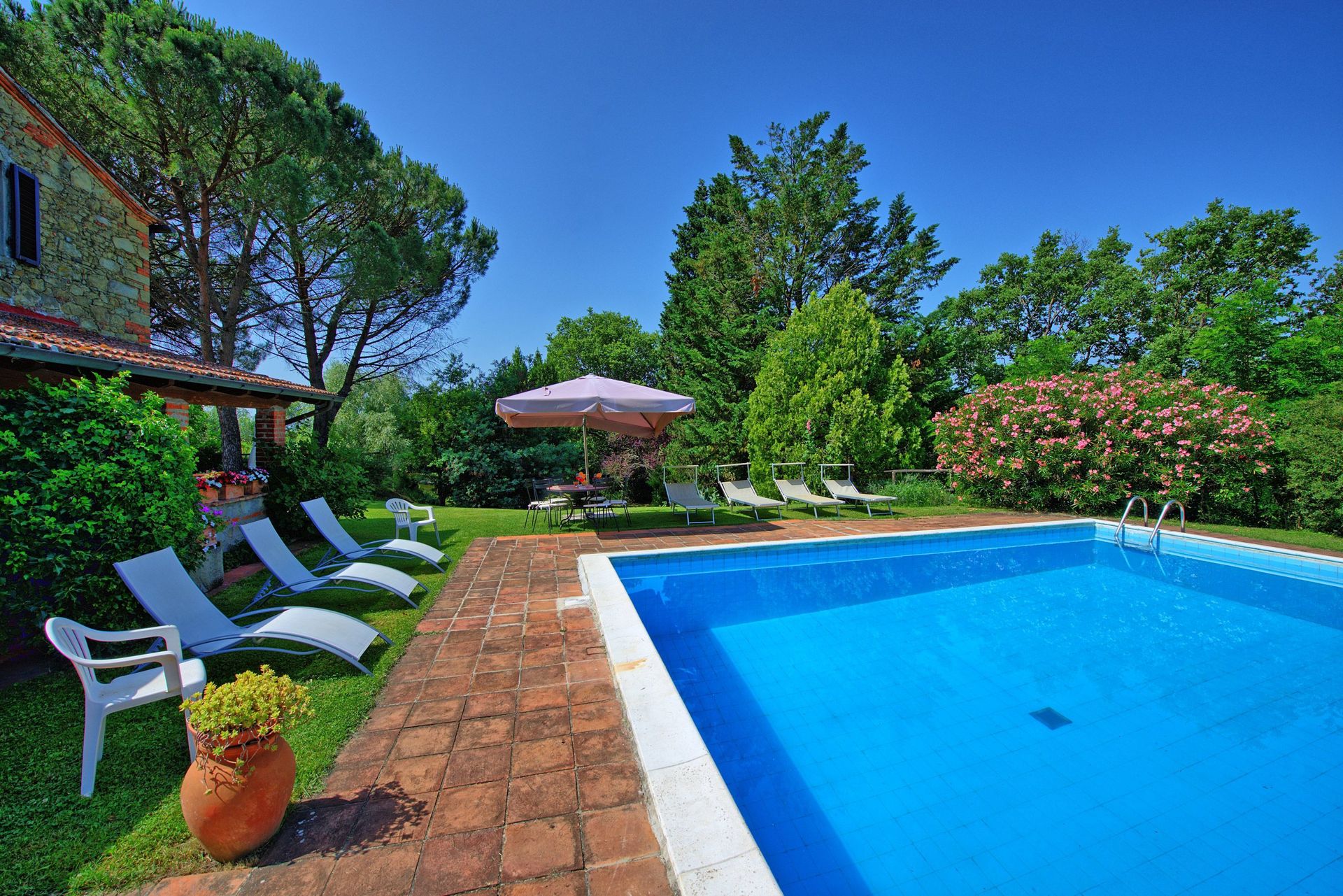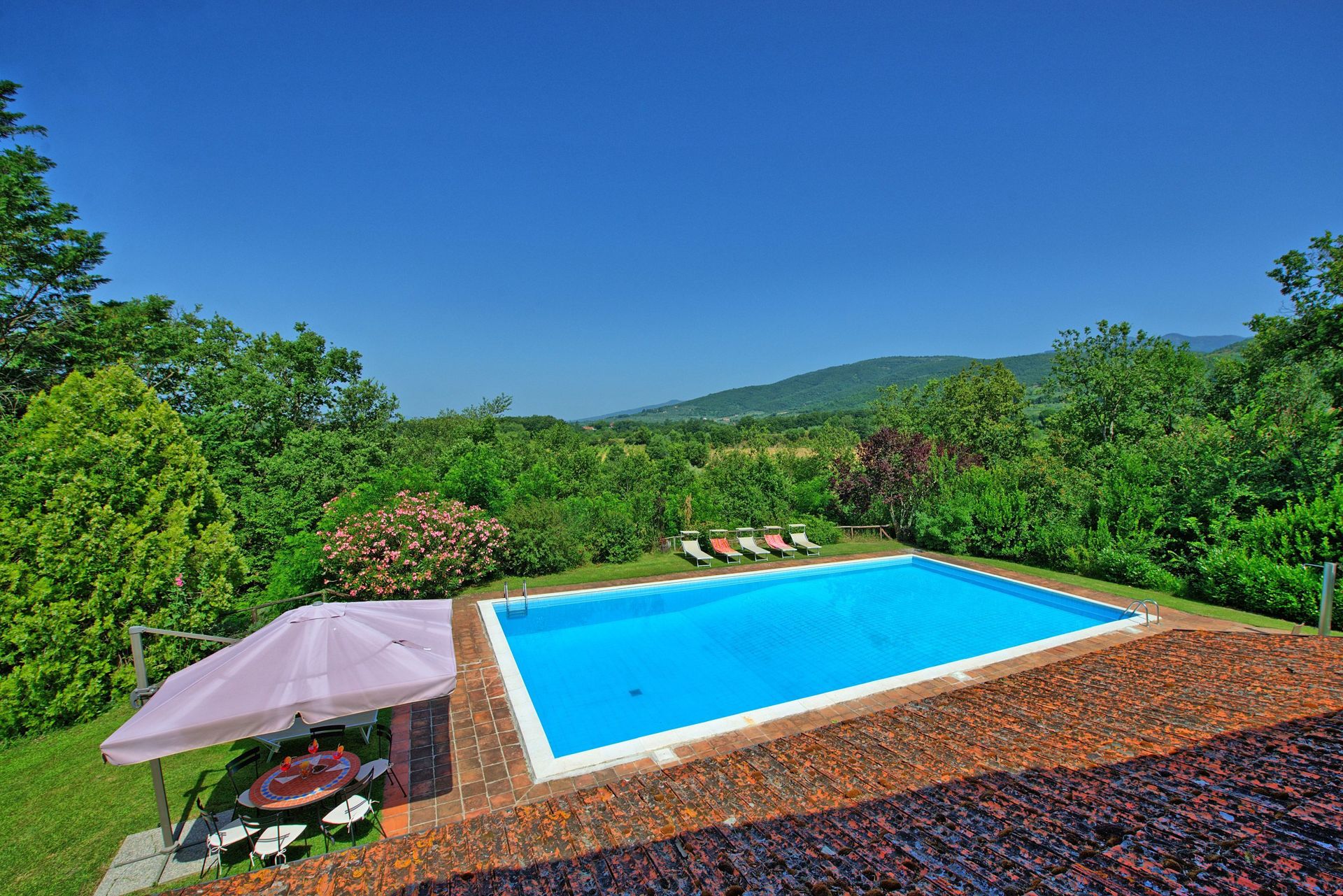 The Tuscan sun heated up the large pool fairly quickly and the same for the temperature in the whole house, because it was cold in the beginning.