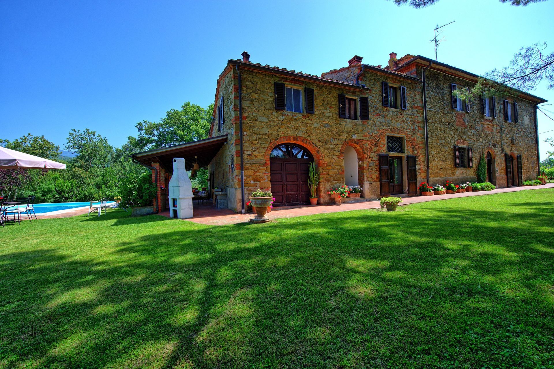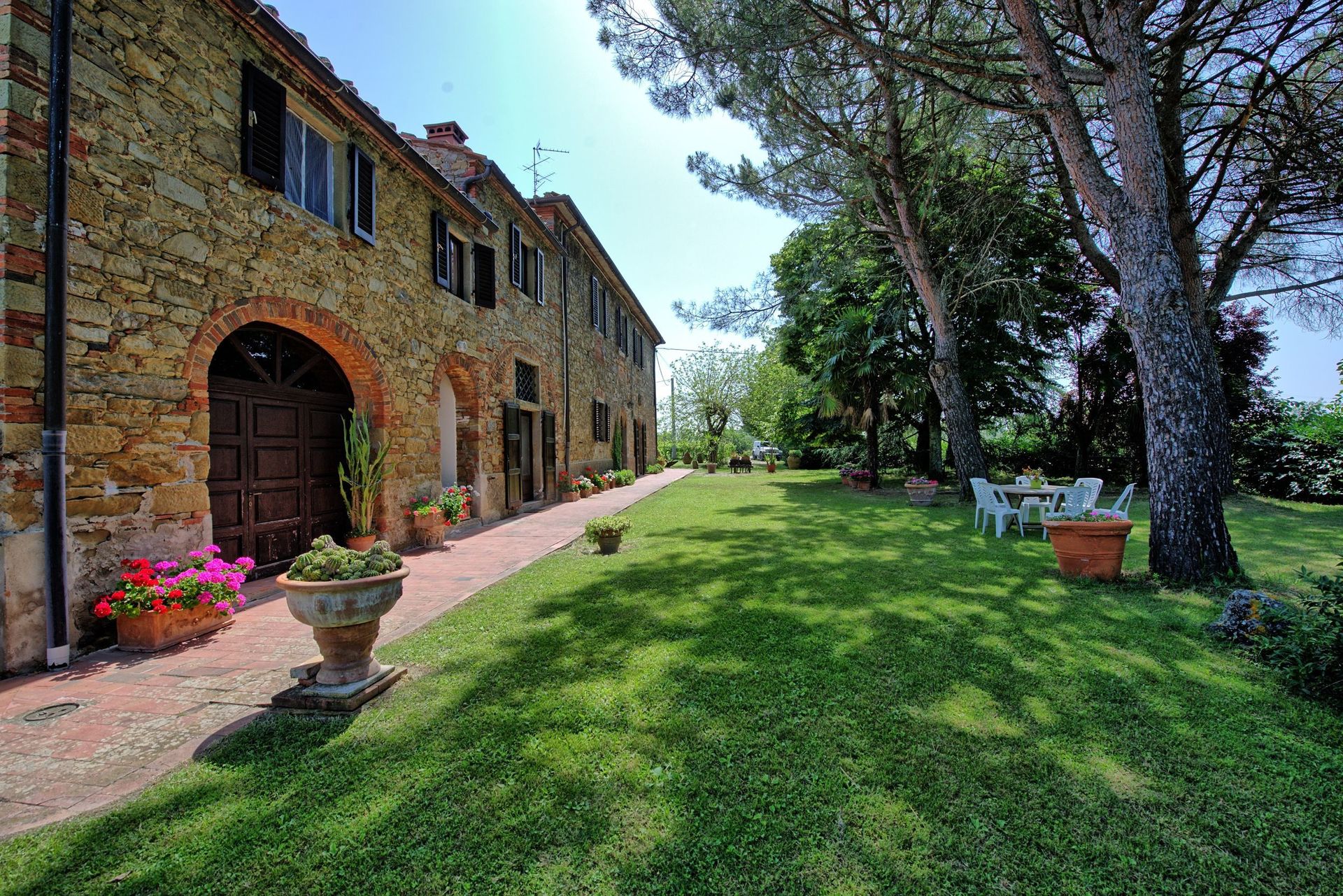 Afstande: Campogialli med købmandsforretninger 500 meter, San Giustino med alle slags butikker 2 km. Arezzo 22 km, Cortona 50 km, Firenze 56 km, Siena 56 km, San Gimignano 77 km, Volterra 108 km, Pisa 140 km.