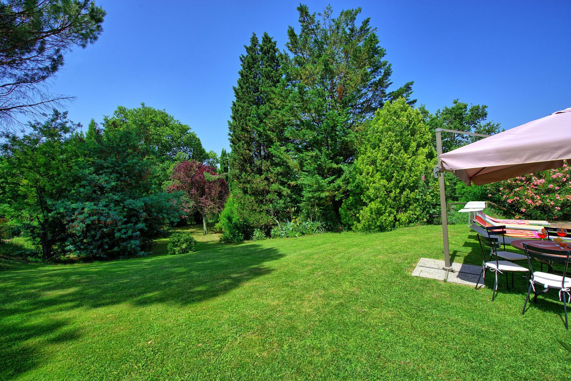 what a beautiful villa, richly equipped with cupboards, paintings, books and other decorations and what a pleasure to sit in the large attractive garden where there is always shade and sun with a beautiful view.