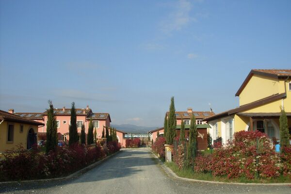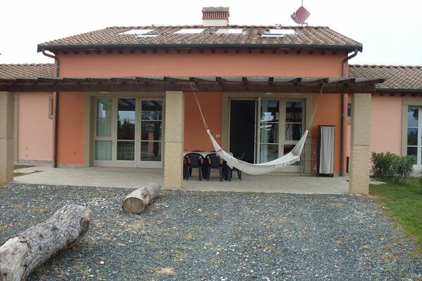 "Fattoria Palazzeta Bilo 4 DS", 2-room apartment 40 m2 on 2 levels, on the ground floor. Comfortable furnishings: open living/dining room with 2 sofabeds and TV. Exit to the garden, pergola. Kitchenette (4 hot plates, oven) with dining table. Shower/bidet/WC. Upper floor: 1 double bedroom. Shower/bidet/WC. Small garden. Balcony furniture. Suitable for families. 1 small pet/ dog allowed.