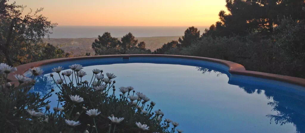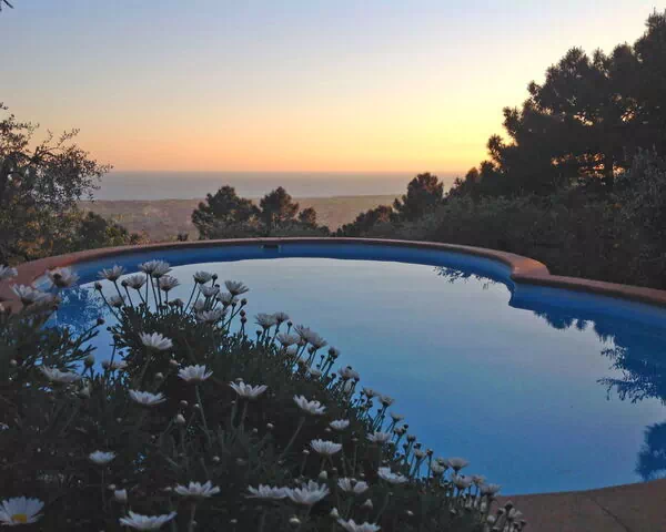 Haven omkring villaen er rig på blomstrende planter og modne træer og omgiver ejendommen på alle sider. Terrassen er møbleret med komfortable havemøbler og egner sig til morgenkaffee, afslappede frokoster eller aftengatherings under åben himmel. Et dedikeret grillhus tilbyder et læ og veludstyrket område til udendørsspising. Svømmepølen måler 5 x 8 meter og udgør centerpeice for udendørsarealerne; den inviterer gæster til at køle af og slappe af mens man nyder udsigten over bakkelandet.