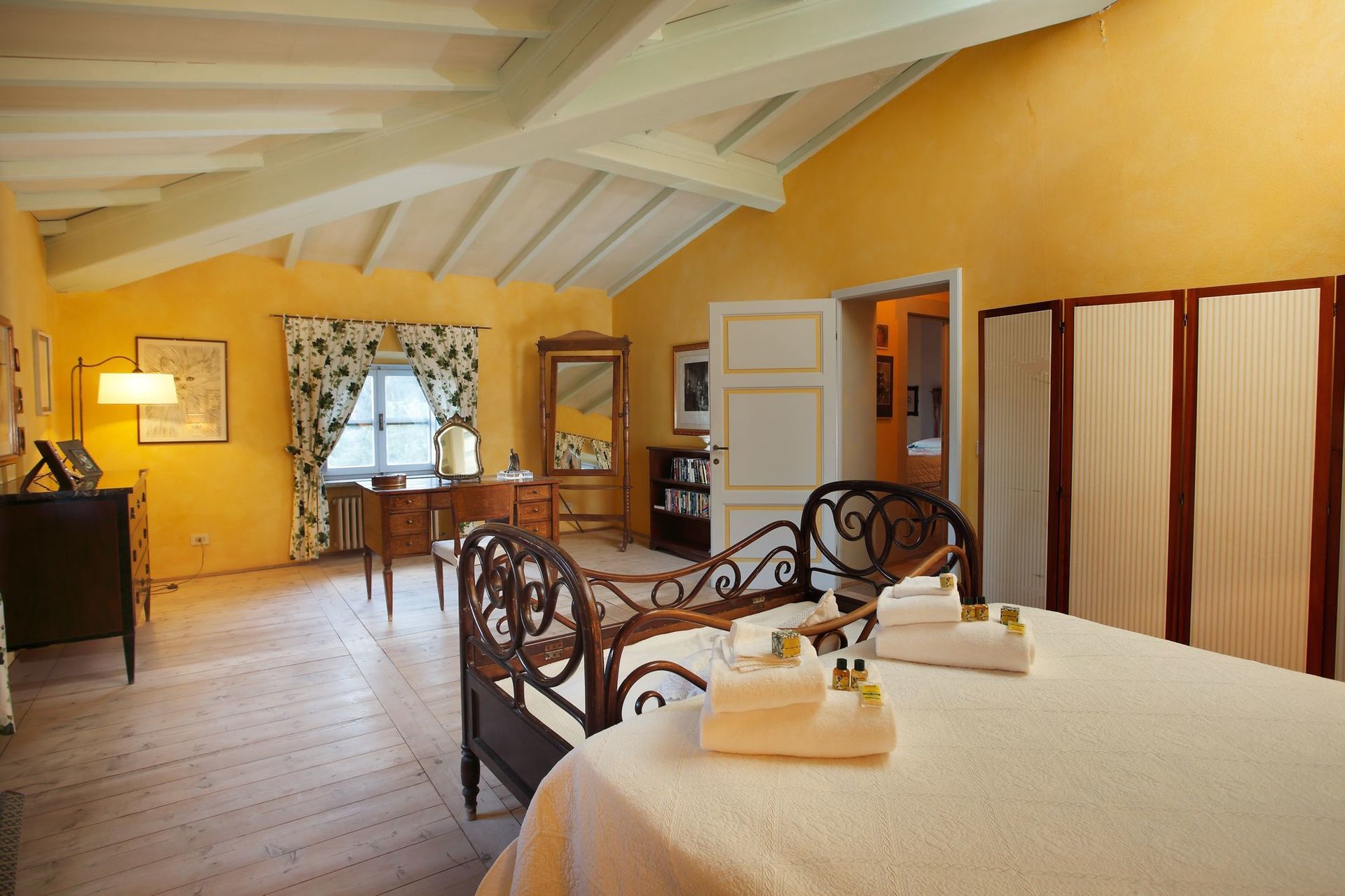 The Magnolia apartment on the first floor, richly furnished in “Empire” style furniture, in 2 double rooms, one viewing the XVII century courtyard, one viewing the apartment, and 1 single room viewing the garden.
