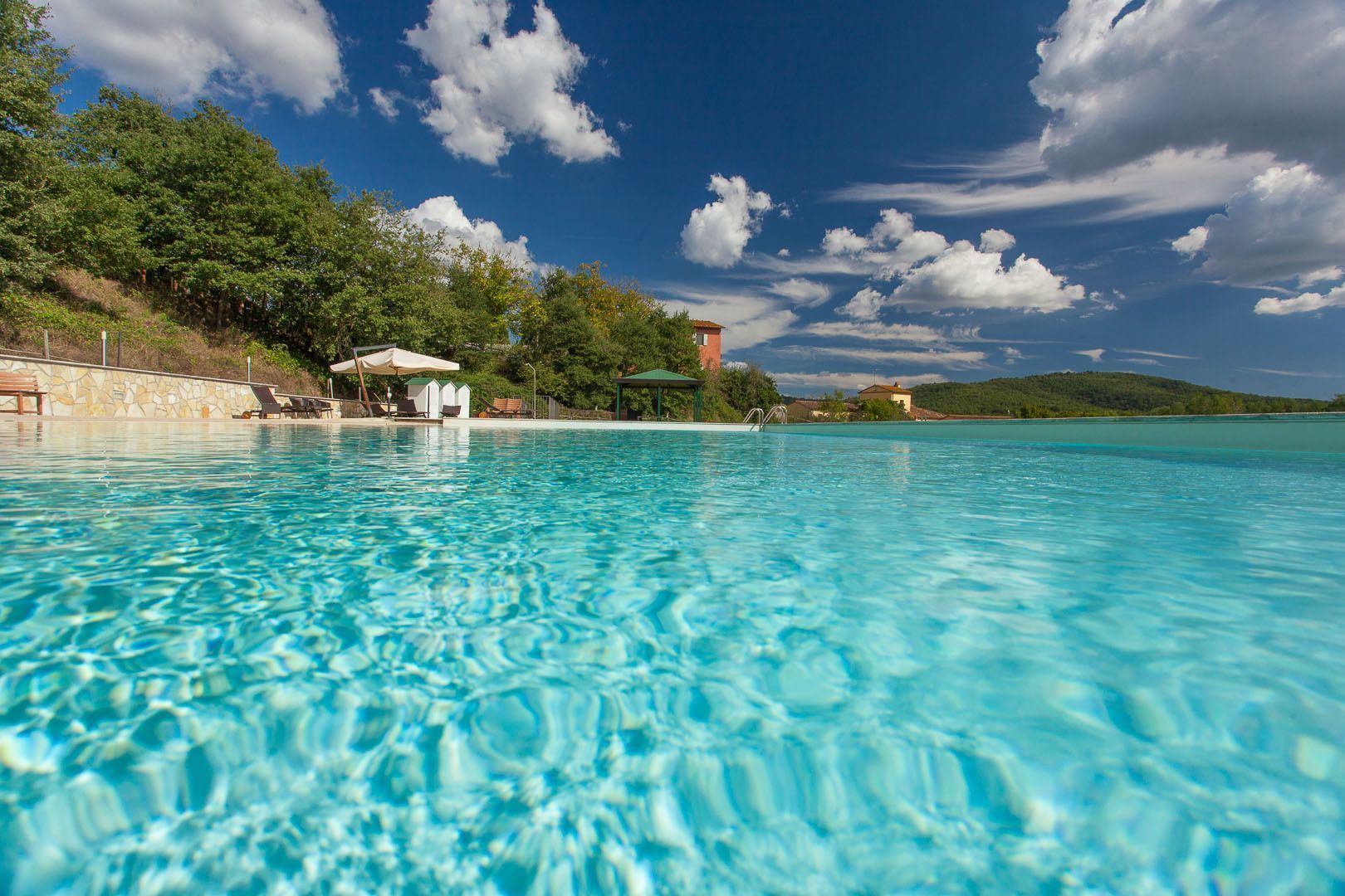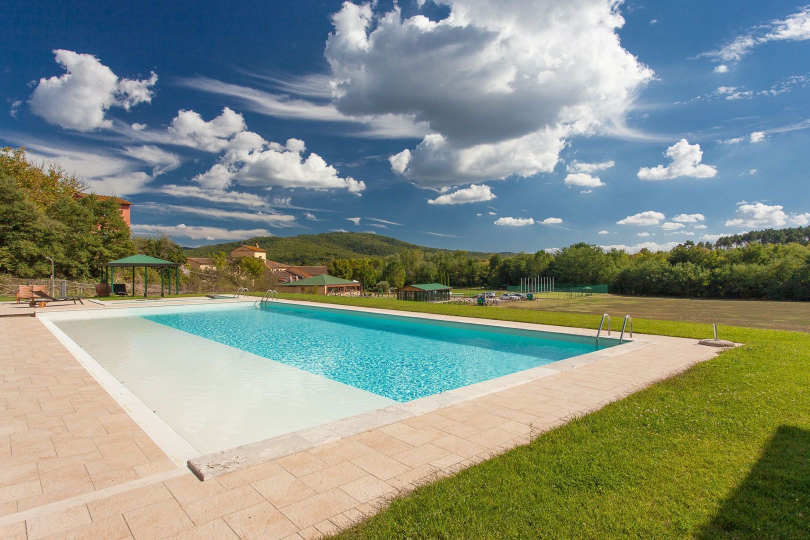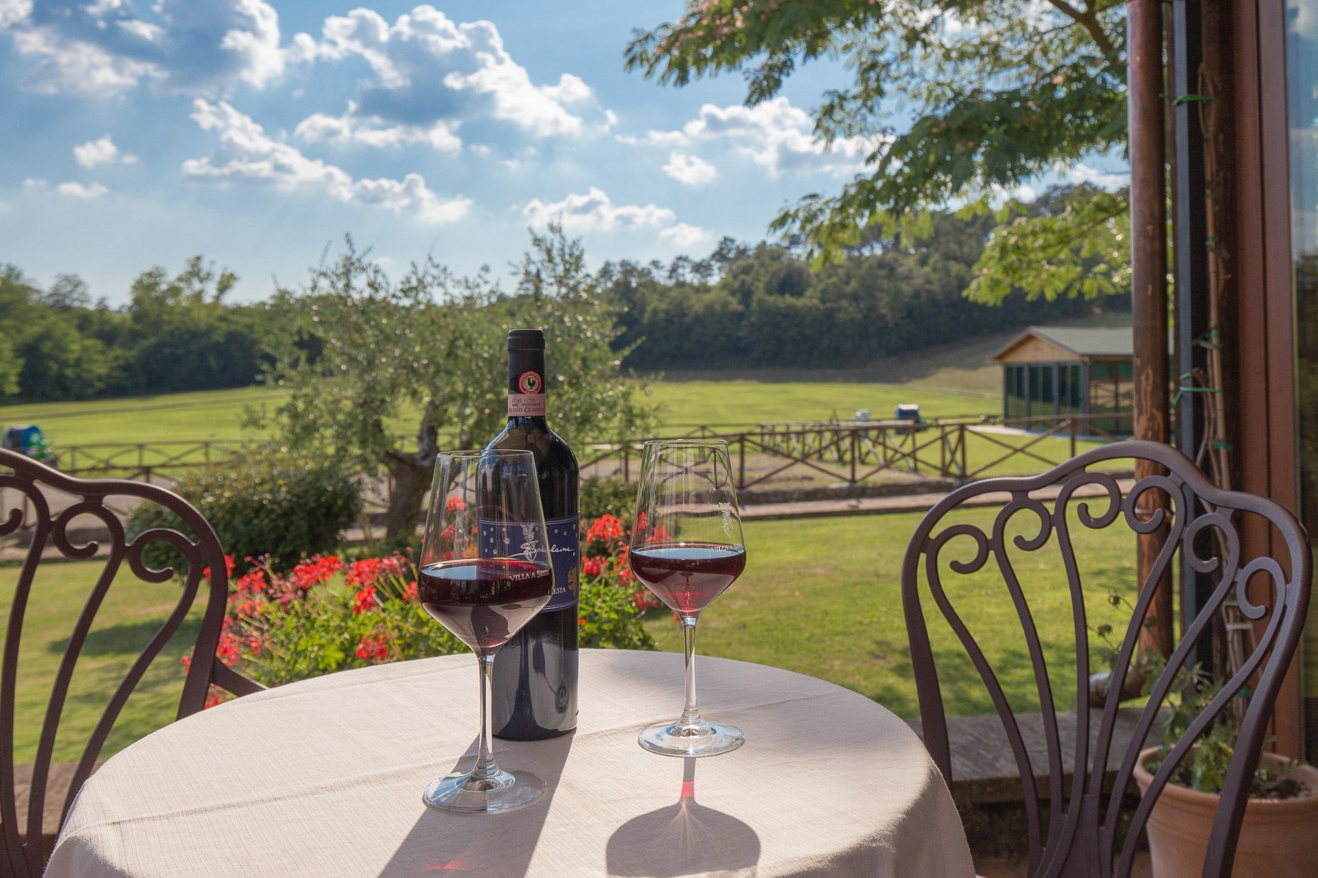 First floor Access from an external staircase. Standard size, air conditioned, double room with en suite bathroom. Tastefully furnished in traditional Tuscan style the room enjoys views across open countryside. Features include double bed with luxury bedding, terracotta flooring, mini bar, satellite TV, telephone and safe. The en-suite bathroom is tastefully decorated in travertine and has a shower, WC, bidet, hairdryer and a complete set of complimentary toiletries.