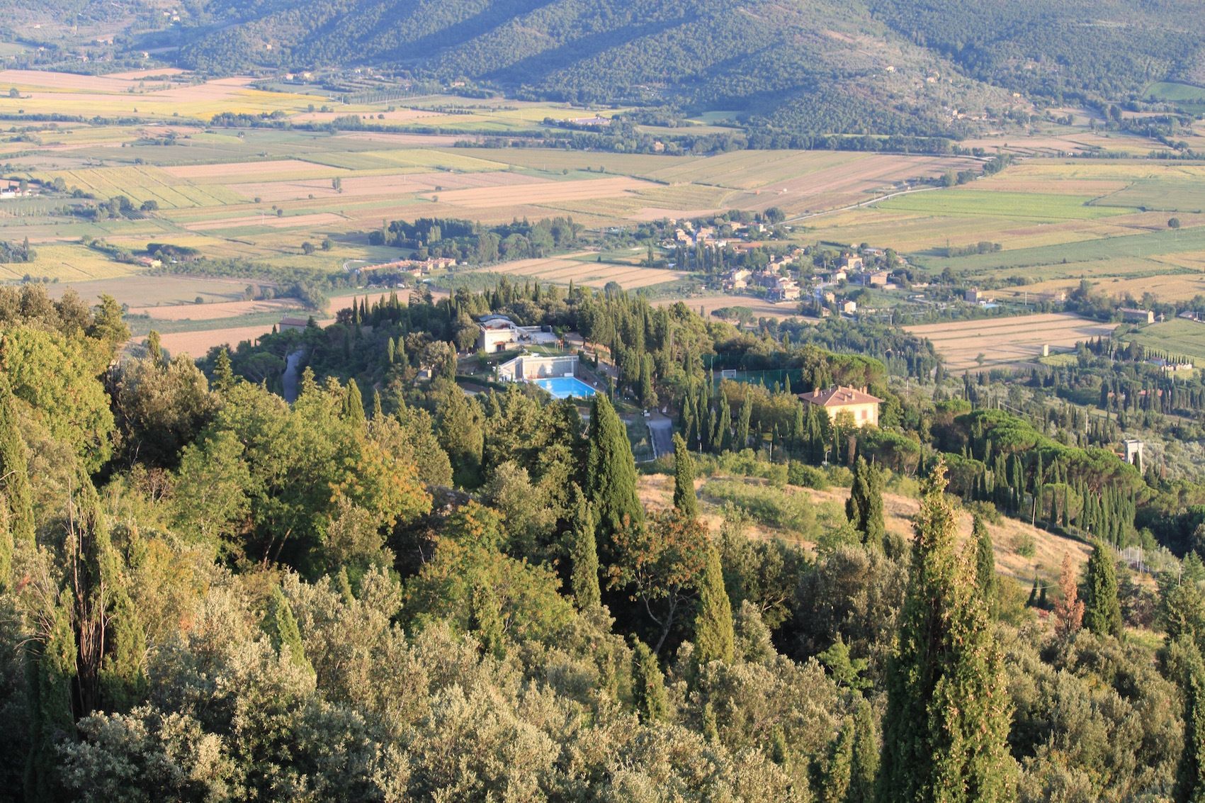 Cortona centrum med monumenter, museer, butikker og hyggelige restauranter ca. 100 meter, Arezzo 30 km, Perugia 45 km, Siena ca. 70 km