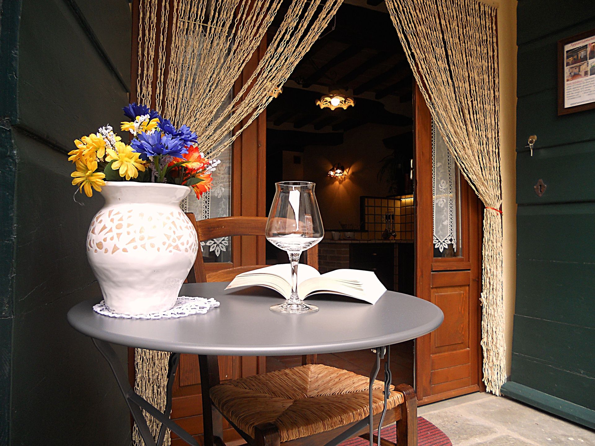 Et lille bord med stole til 2 personer til rådighed uden for lejligheden, gratis WIFI internet